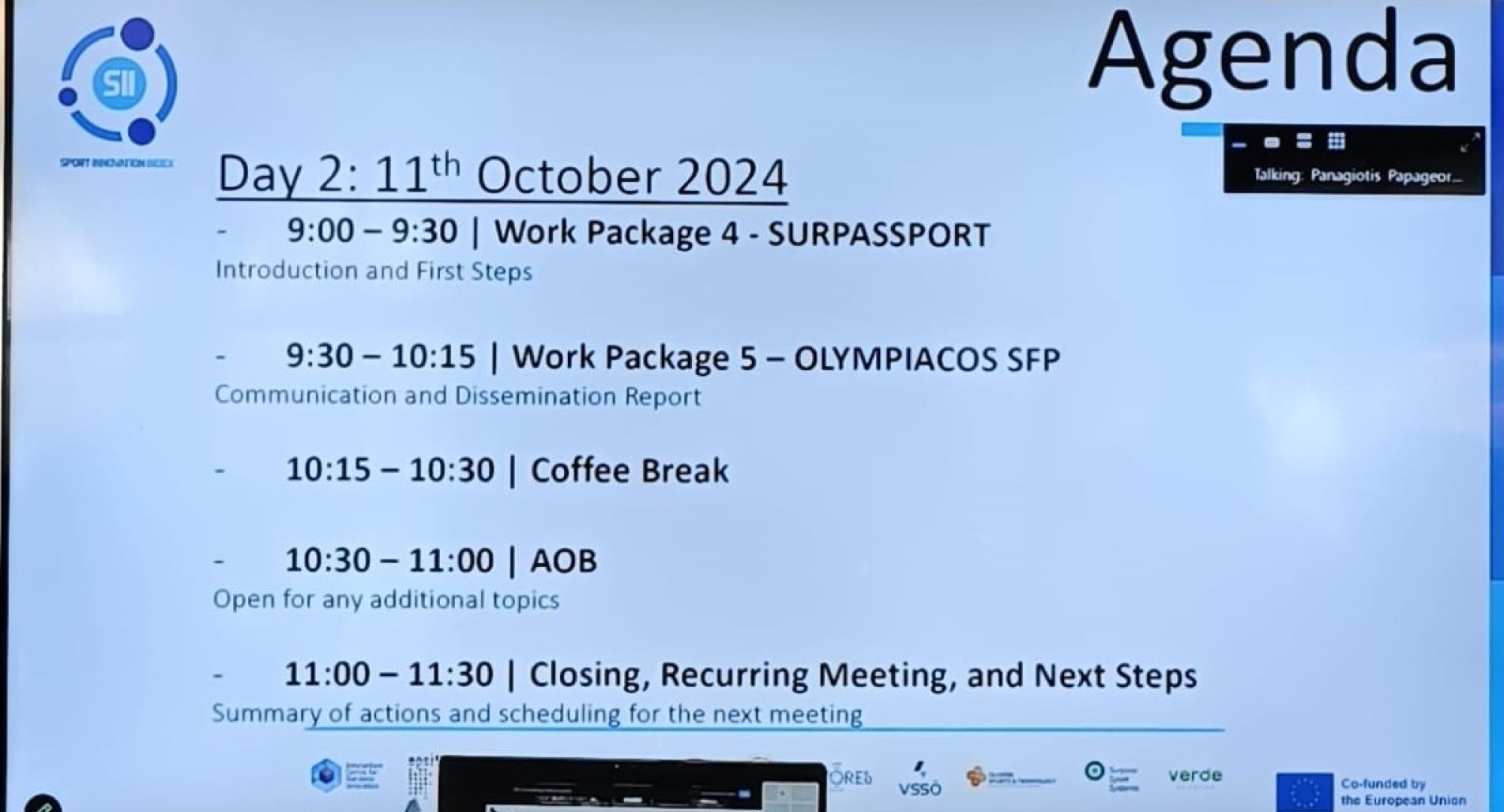 Στο πλαίσιο της Γενικής Συνέλευσης της EPSI (European Platform for Sports Innovation) που πραγματοποιήθηκε στην Αρχαία Ολυμπία 7-11 Οκτωβρίου ο Ολυμπιακός συμμετείχε στο meeting του προγράμματος Sport Innovation Index της Ευρωπαϊκής Επιτροπής μέσω του Erasmus+. Το συγκεκριμένο project στοχεύει στη δημιουργία ενός εργαλείου για την αξιολόγηση του βαθμού καινοτομίας των αθλητικών οργανώσεων, έχοντας ως γενικό στόχο να βοηθήσει τους ενδιαφερόμενους να βελτιώσουν τη διακυβέρνησή τους, να συγκρίνουν καινοτόμα αποτελέσματα έγκαιρα ή σε σύγκριση με άλλους οργανισμούς αλλά και να διαπρέψουν στην καινοτομία.