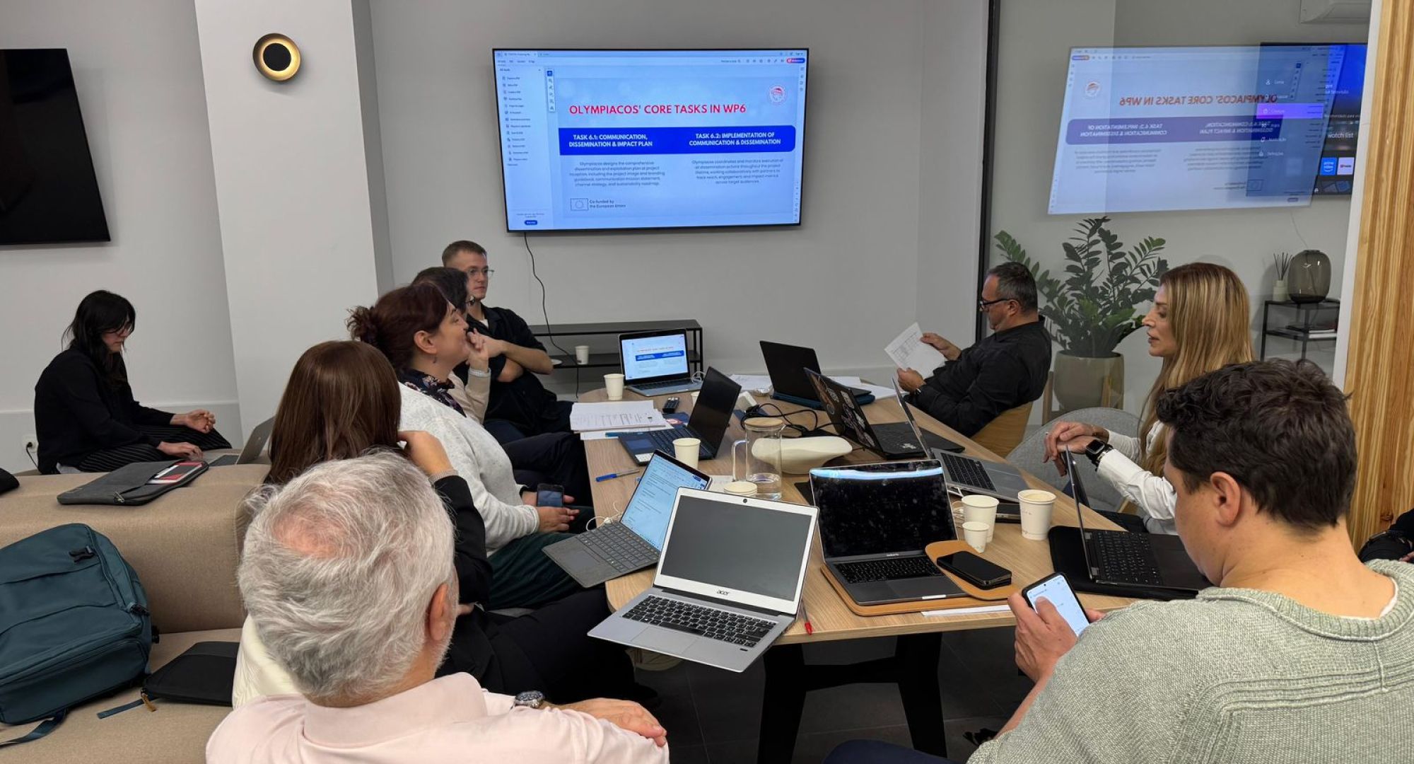 Ιδιαίτερη στιγμή της ημέρας αποτέλεσε η παρουσίαση από τον Ολυμπιακό του καινοτόμου “SIM είναι = plan”, το οποίο θα αποτελέσει τη βάση για τη στρατηγική επικοινωνίας και διάχυσης του έργου τους επόμενους μήνες, καθώς ο Ολυμπιακός είναι ο leader του Communication & Dissemination Work Package (WP6).