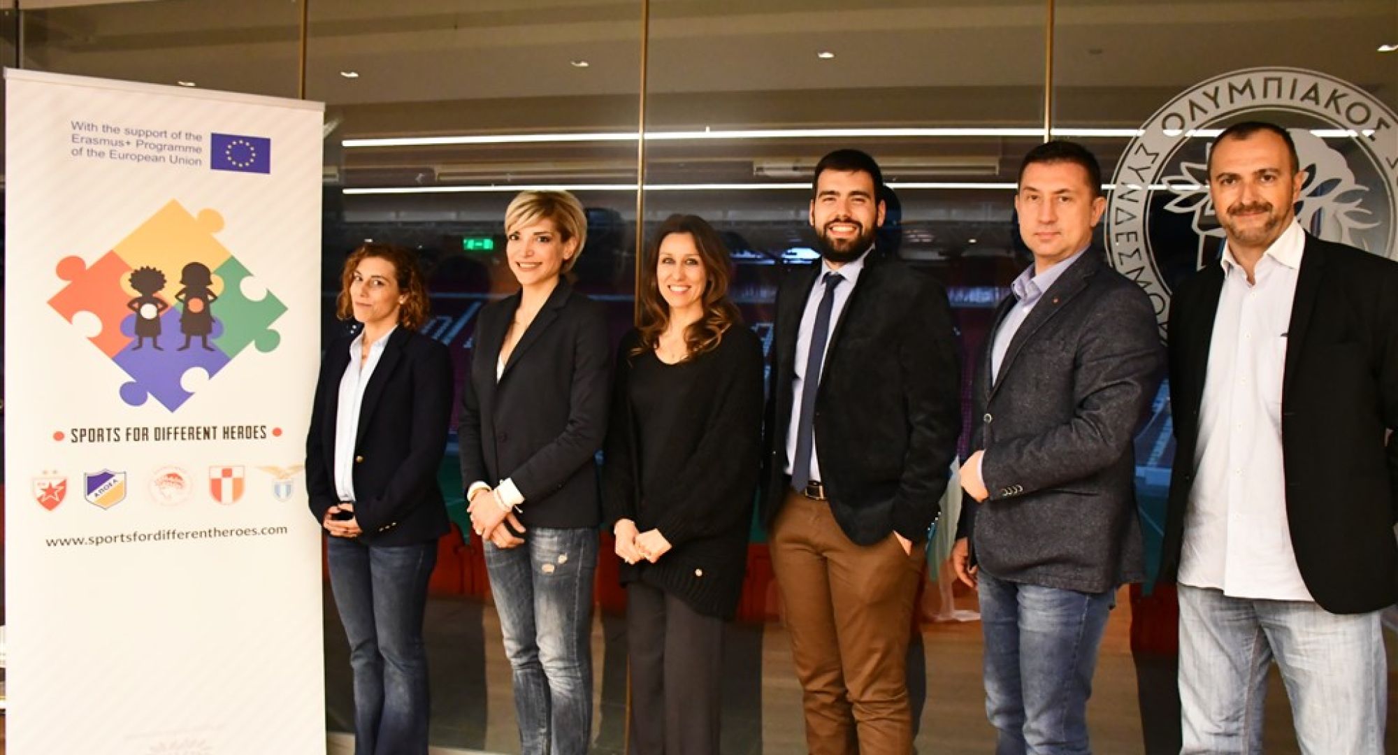 Τhe opening of the “Sport for different Heroes” project was held with special interest in the ‘’Red 1925’’ Hall of Karaiskakis Stadium. Olympiacos staff welcomed the representatives of the other participants (Hask Mladost, Red Star, Lazio Parachuting, Apoel) and presented the project requirements.