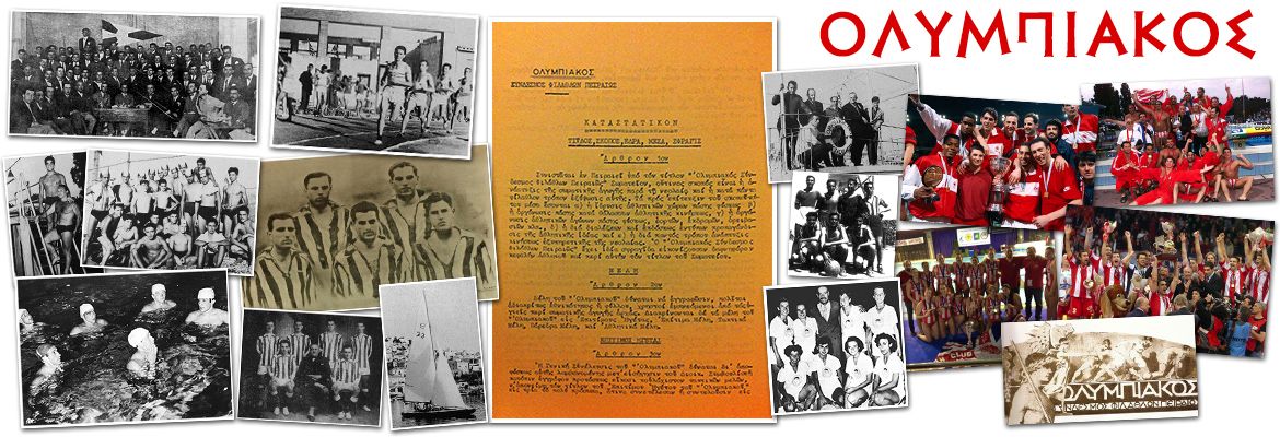 Ο Ολυμπιακός Σύνδεσμος Φιλάθλων Πειραιώς, ιδρύθηκε επίσημα το 1925, αν και η πρώτη ιδρυτική συνέλευση πραγματοποιήθηκε σχεδόν έναν χρόνο νωρίτερα, στα μέσα του 1924. Μετά από πρόταση του Νότη Καμπέρου, ενός εκ των ιδρυτών του συνδέσμου, ως έμβλημα της ομάδας, επιλέχθηκε ο δαφνοστεφανομένος έφηβος, εμπνευσμένος από τους Ολυμπιακούς Aγώνες της αρχαιότητας, αποτυπώνοντας τους συμβολισμούς του ονόματος του συλλόγου… «την δύναμη, την αθλητική ισχύ, το ήθος, την ευγενή άμιλλα, την επικράτηση και το Ολυμπιακό ιδεώδες», όπως αναφέρεται στο πρώτο Καταστατικό του συνδέσμου. Ο Γιάννης Ανδριανόπουλος εμπνευσμένος από την ομάδα του στο Κέιμπριτζ πρότεινε ο Ολυμπιακός να φορά το κόκκινο και το λευκό, χρώματα που συμβολίζουν την γενναιότητα, το πάθος, την αγνότητα και την ηθική. Η φανέλα του Ολυμπιακού, είναι ριγωτή ερυθρόλευκη ενώ σε διάφορα τμήματα έχει χρησιμοποιηθεί και η μονόχρωμη κόκκινη.