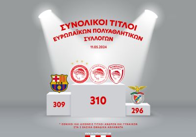 Ο ΟΛΥΜΠΙΑΚΟΣ μας έφτασε στους 310 τίτλους (εγχώριους και διεθνείς σε Άνδρες και Γυναίκες) στα 5 βασικά ομαδ...