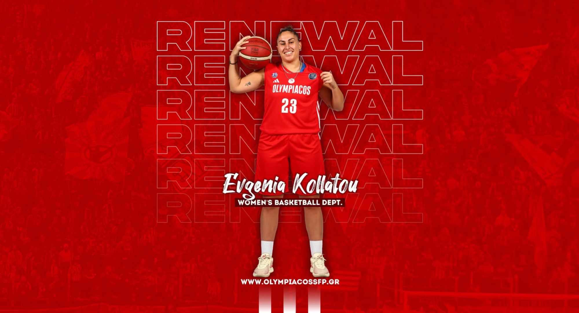 O ΟΛΥΜΠΙΑΚΟΣ Σ.Φ.Π. ανακοινώνει την ανανέωση της συνεργασίας του με την Ευγενία Κολλάτου. Η διεθνής πόιντ γκαρντ υπέγραψε το νέο της συμβόλαιο και παραμένει στο ρόστερ της ομάδας μπάσκετ Γυναικών του συλλόγου.