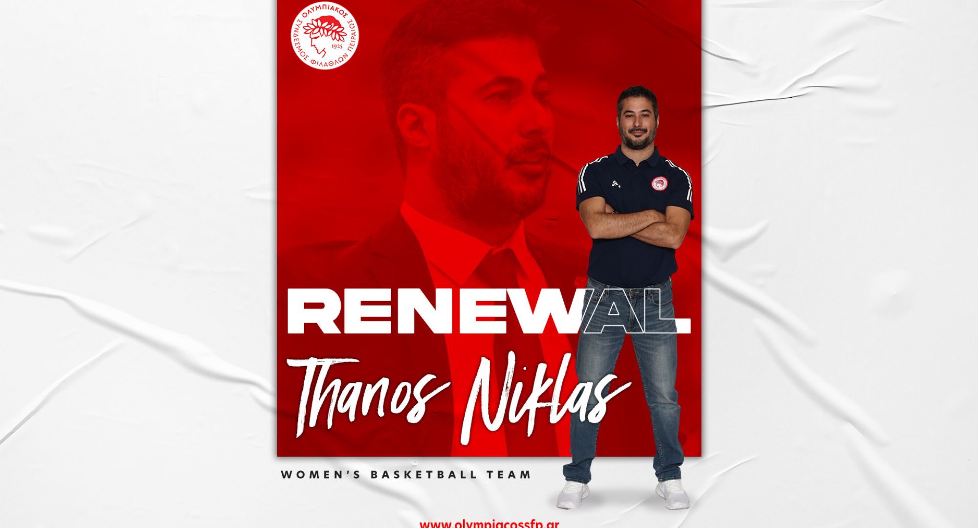 Ο ΟΛΥΜΠΙΑΚΟΣ Σ.Φ.Π. ανακοινώνει την ανανέωση της συνεργασίας του με τον Θάνο Νίκλα. Ο Έλληνας προπονητής υπέγραψε το νέο του συμβόλαιο και παραμένει στο «τιμόνι» της ομάδας μπάσκετ Γυναικών του συλλόγου.