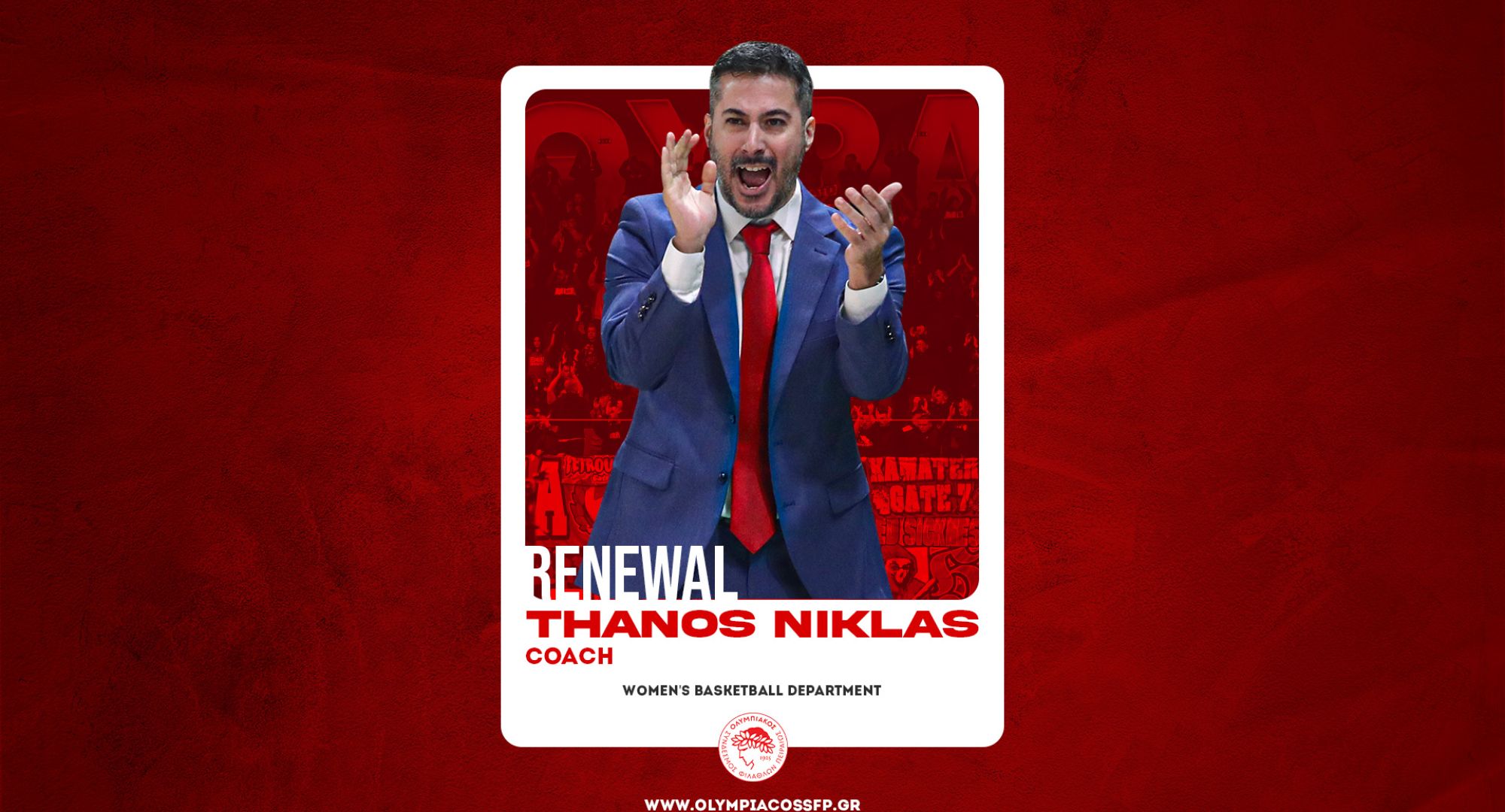 Ο ΟΛΥΜΠΙΑΚΟΣ Σ.Φ.Π. ανακοινώνει την ανανέωση της συνεργασίας του με τον Θάνο Νίκλα. Ο Έλληνας προπονητής υπέγραψε το νέο του συμβόλαιο και παραμένει στην τεχνική ηγεσία της ομάδας μπάσκετ Γυναικών του συλλόγου.