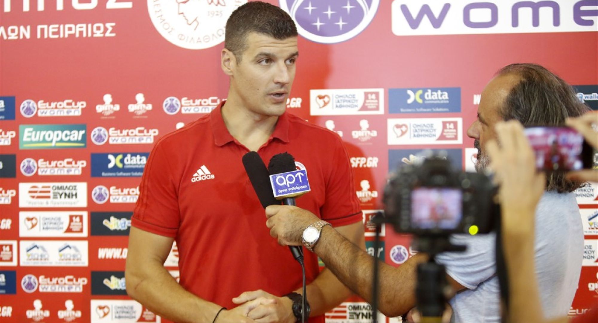 Αναφορικά με το γεγονός ότι και φέτος η Εθνική ομάδα έχει αρκετές αθλήτριες του Ολυμπιακού, ο κόουτς της ομάδας είπε: «Έτσι φαίνεται η ποιότητα της ομάδας μας. Πολλές από τις παίκτριες μας στελεχώνουν και την Εθνική ομάδα. Αν και αυτό αποτελεί και ένα πρόβλημα για την προετοιμασία μας αλλά η εθνική ομάδα είναι μια τιμή για οποιαδήποτε αθλήτρια συμμετέχει. Θεωρώ ότι ο βασικός κορμός της ομάδας, που αποτελούν και την εθνική είναι αυτός που θα βοηθήσει και τα νέα παιδιά ώστε να συνεχίσουμε και να πραγματοποιήσουμε τους στόχους μας».