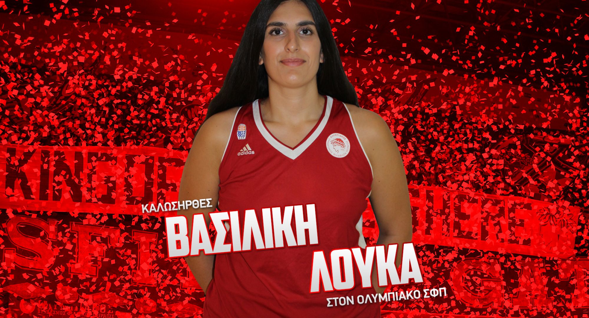 Ο Ολυμπιακός Σ.Φ.Π., ανακοινώνει την έναρξη της συνεργασίας του με την Βασιλική Λούκα. Η αθλήτρια καλαθοσφαίρισης (ημερομηνία γέννησης 5/07/1996), έχει ύψος 1,93μ. και αγωνίζεται ως σέντερ.