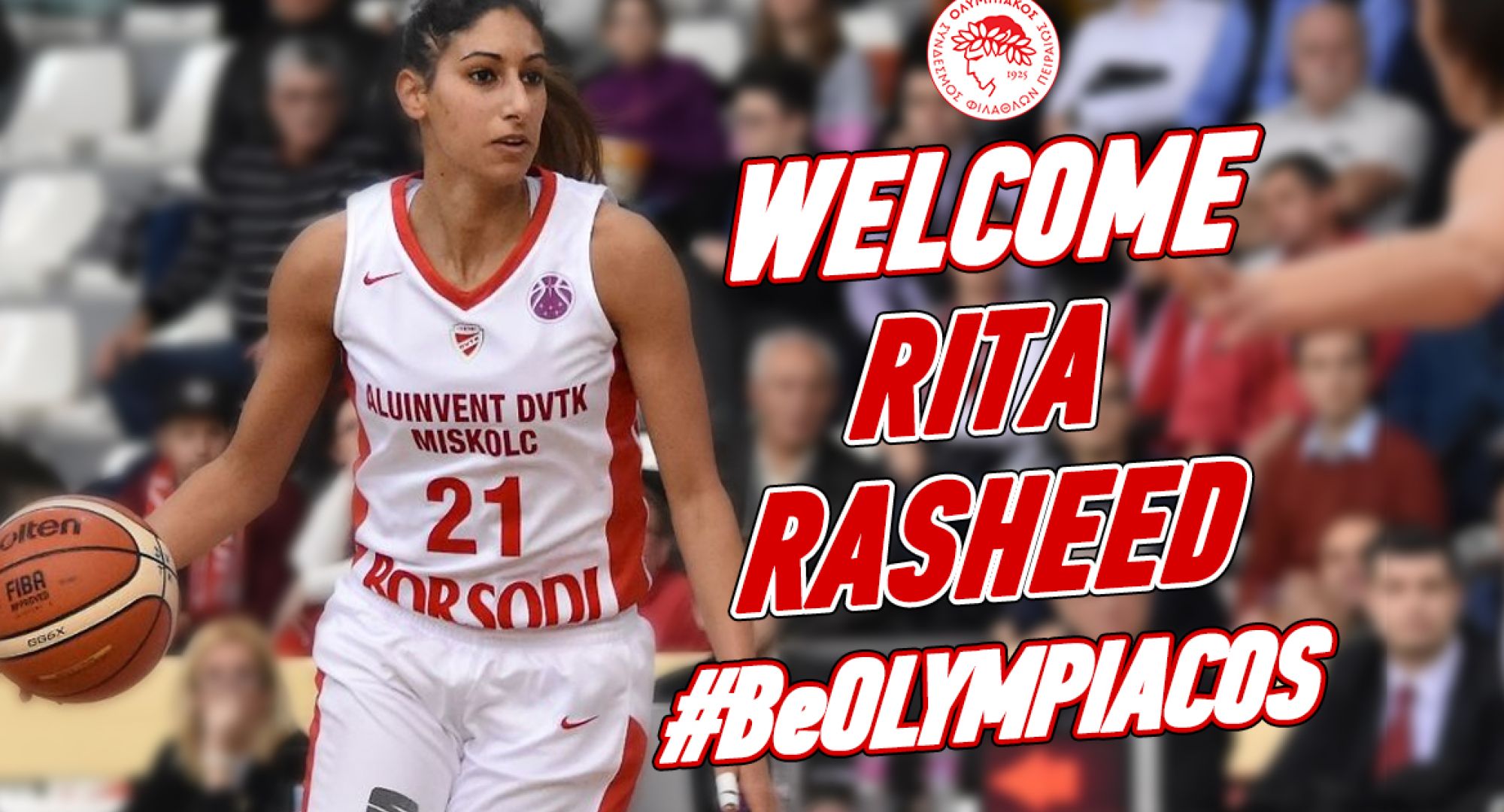Ο Ολυμπιακός Σ.Φ.Π., ανακοινώνει την έναρξη της συνεργασίας του με την Ρίτα Ρασίντ. Η αθλήτρια καλαθοσφαίρισης από την Ουγγαρία (ημερομηνία γέννησης 05/08/1989), έχει ύψος 1,82μ. και αγωνίζεται ως φόργουορντ.