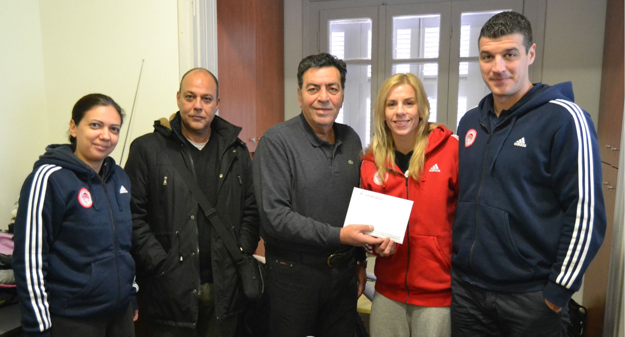 Η Εβίνα Σταμάτη, παρέδωσε την δωροεπιταγή στον πρόεδρο της «Δράσης», Ηρακλή Ανδρικόπουλο, ο οποίος ήταν και ο οικοδεσπότης των «ερυθρόλευκων».