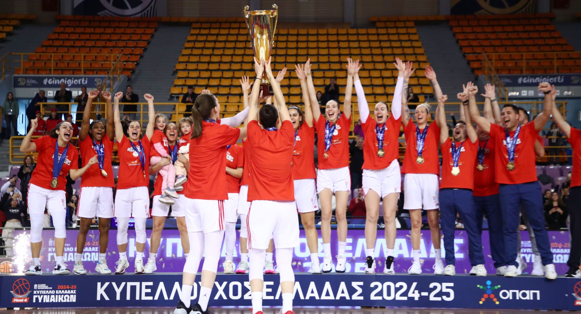 Την κατάκτηση του πρώτου τίτλου της στην ιστορική σεζόν 2024-25, πανηγύρισε η ομάδα μπάσκετ Γυναικών του Ολυμπιακού! Ο Θρύλος επικράτησε με 59-51 του ΠΑΣ Γιάννινα στον μεγάλο τελικό του Final-4 Κυπέλλου, που πραγματοποιήθηκε στο κλειστό γυμναστήριο Νέας Αλικαρνασσού «Δύο Αοράκια» στο Ηράκλειο.