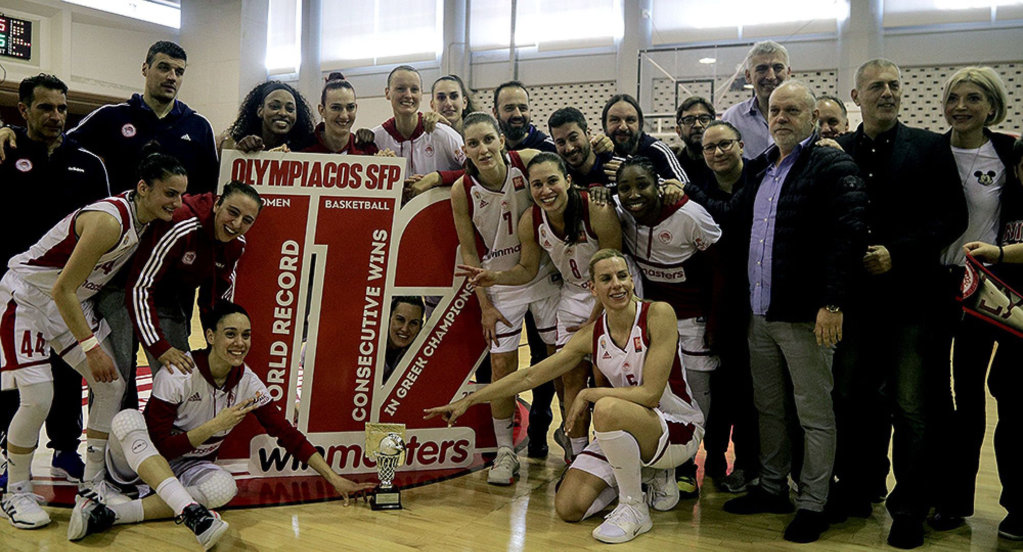 Συνεχίζει να γράφει ιστορία! Ο Ολυμπιακός επικράτησε των Χανίων με 91-65 για την 15η αγωνιστική της Α1 Γυναικών και παραμένει αήττητος σε όλες τις εγχώριες διοργανώσεις. Με τη νίκη απέναντι στην ομάδα της Κρήτης έσπασε το ρεκόρ των Χάσκις του Κονέκτικατ, φτάνοντας τις 112 σερί στο πρωτάθλημα και έγινε η πρώτη ομάδα παγκοσμίως σε επίπεδο γυναικών που το έχει καταφέρει αυτό το επίτευγμα. Αυτό ήταν το 130ο σερί θετικό αποτέλεσμα σε όλες τις εγχώριες διοργανώσεις για τον Θρύλο που γράφει με χρυσά γράμματα το όνομά του στην ιστορία του γυναικείου μπάσκετ. Οι «ερυθρόλευκες» πραγματοποίησαν το ρεκόρ, υπό το βλέμμα του Δήμαρχου του Πειραιά, Γιάννη Μώραλη, ο οποίος με το τέλος του παιχνιδιού τις βράβευσε για την επιτυχία τους, αλλά και του προέδρου του Ερασιτέχνη, Μιχάλη Κουντούρη.