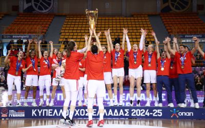 Την κατάκτηση του πρώτου τίτλου της στην ιστορική σεζόν 2024-25, πανηγύρισε η ομάδα μπάσκετ Γυν...