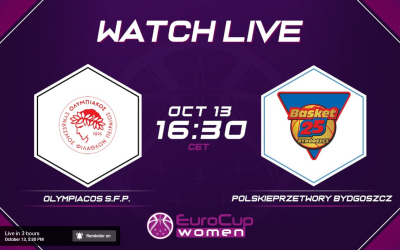 Παρακολουθήστε τον αγώνα του Ολυμπιακού με την Polskieprzetwory Bydgoszcz, για την 1η αγωνιστική ...