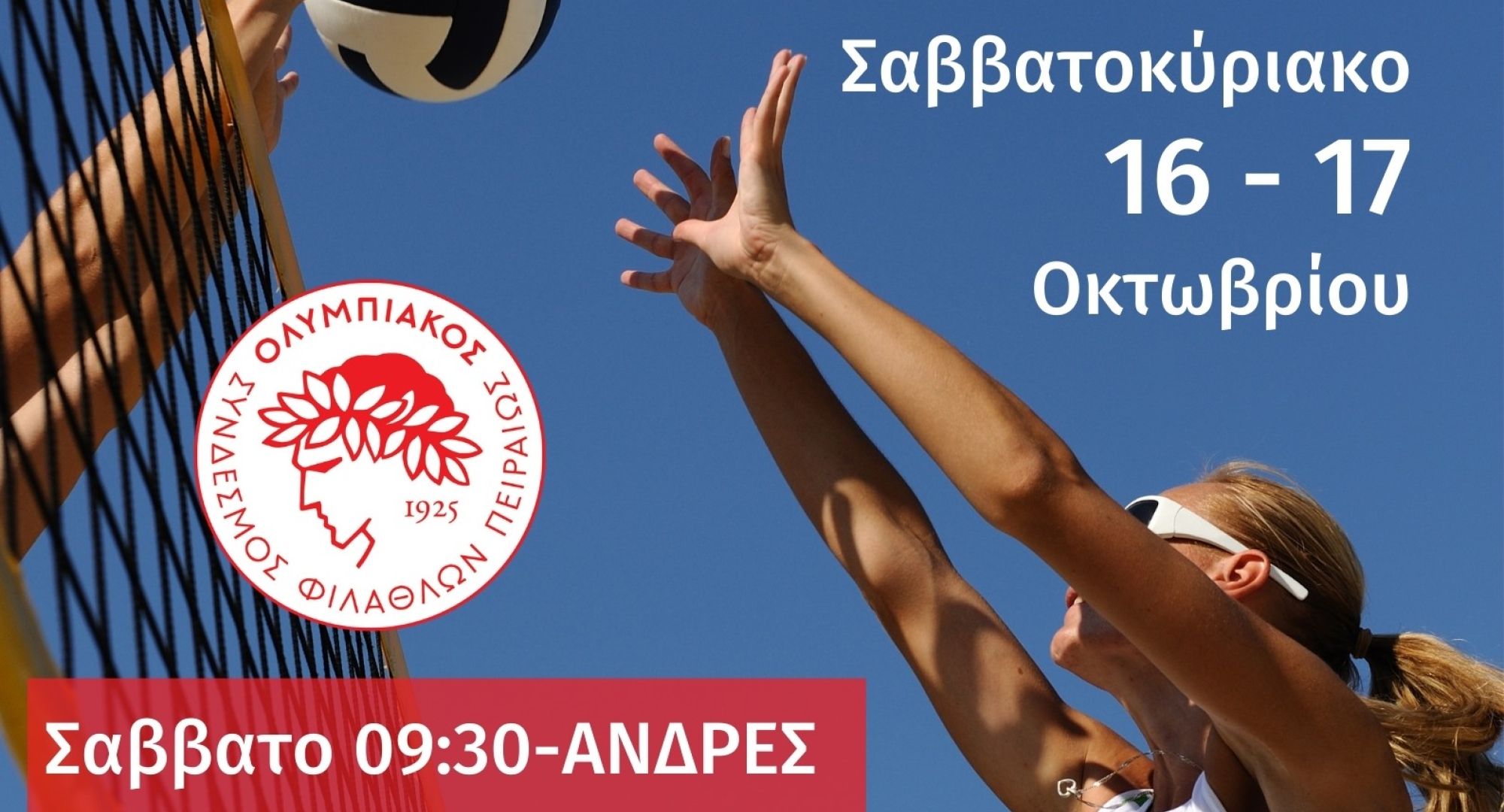 Ανακοινώνεται η έναρξη των συμμετοχών για το 2ο Τουρνουά Beach Volley του Οκτωβρίου που διοργανώνεται από τον Ολυμπιακό Σ.Φ.Π και θα διεξαχθεί το Σάββατο (16/10) και Κυριακή (17/10) στα Βοτσαλάκια. Οι αγώνες των Ανδρών θα ξεκινήσουν το Σάββατο 9:30 και το Μεικτό θα λάβει μέρος την Κυριακή 9:30. Όπως και στο περασμένο τουρνουά, έτσι και τώρα η διοργάνωση είναι ανοιχτή για όλους και το κόστος συμμετοχής παραμένει στα 10€. Τηλέφωνο επικοινωνίας στο 6944338303.