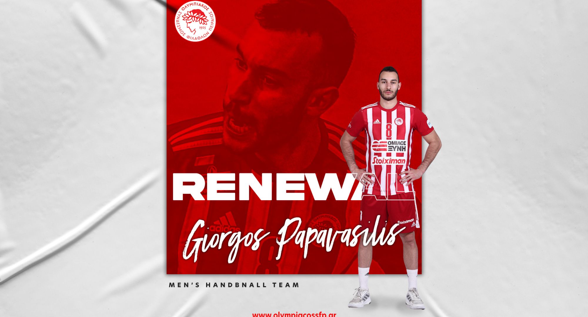 Ο ΟΛΥΜΠΙΑΚΟΣ Σ.Φ.Π. ανακοινώνει την ανανέωση της συνεργασίας του με τον Γιώργο Παπαβασίλη. Ο διεθνής εξτρέμ υπέγραψε το νέο του συμβόλαιο και παραμένει στο ρόστερ της ομάδας χάντμπολ του συλλόγου.