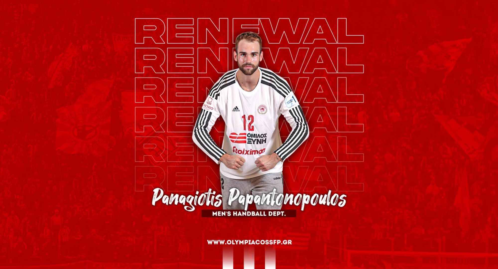 Ο ΟΛΥΜΠΙΑΚΟΣ Σ.Φ.Π. ανακοινώνει την ανανέωση της συνεργασίας του με τον Πάνο Παπαντωνόπουλο. Ο διεθνής τερματοφύλακας υπέγραψε το νέο του συμβόλαιο και παραμένει στο ρόστερ της ομάδας χάντμπολ του συλλόγου.