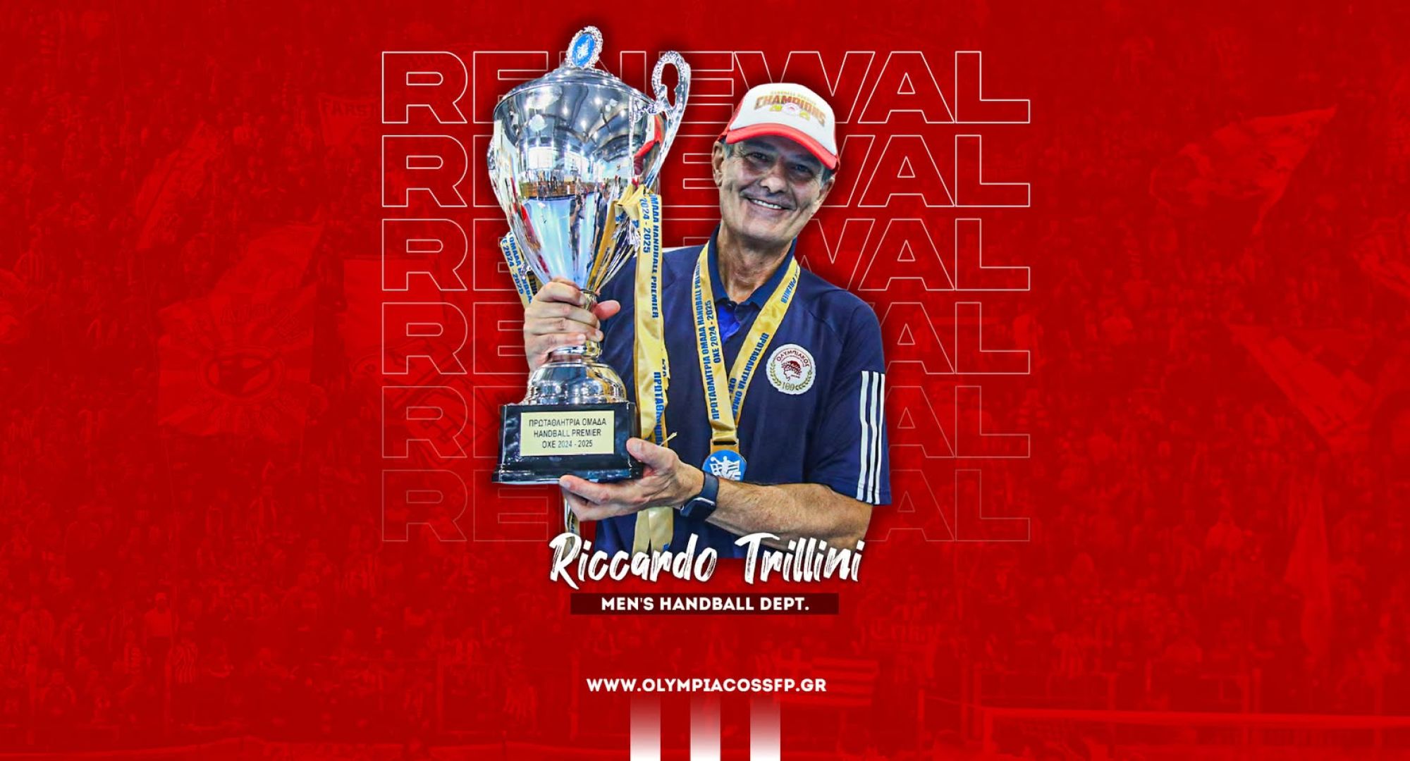 Ο ΟΛΥΜΠΙΑΚΟΣ Σ.Φ.Π. ανακοινώνει την ανανέωση της συνεργασίας του με τον Ρικάρντο Τριλίνι. Ο Ιταλός προπονητής υπέγραψε το νέο του συμβόλαιο και παραμένει στην τεχνική ηγεσία της ομάδας χάντμπολ του συλλόγου.