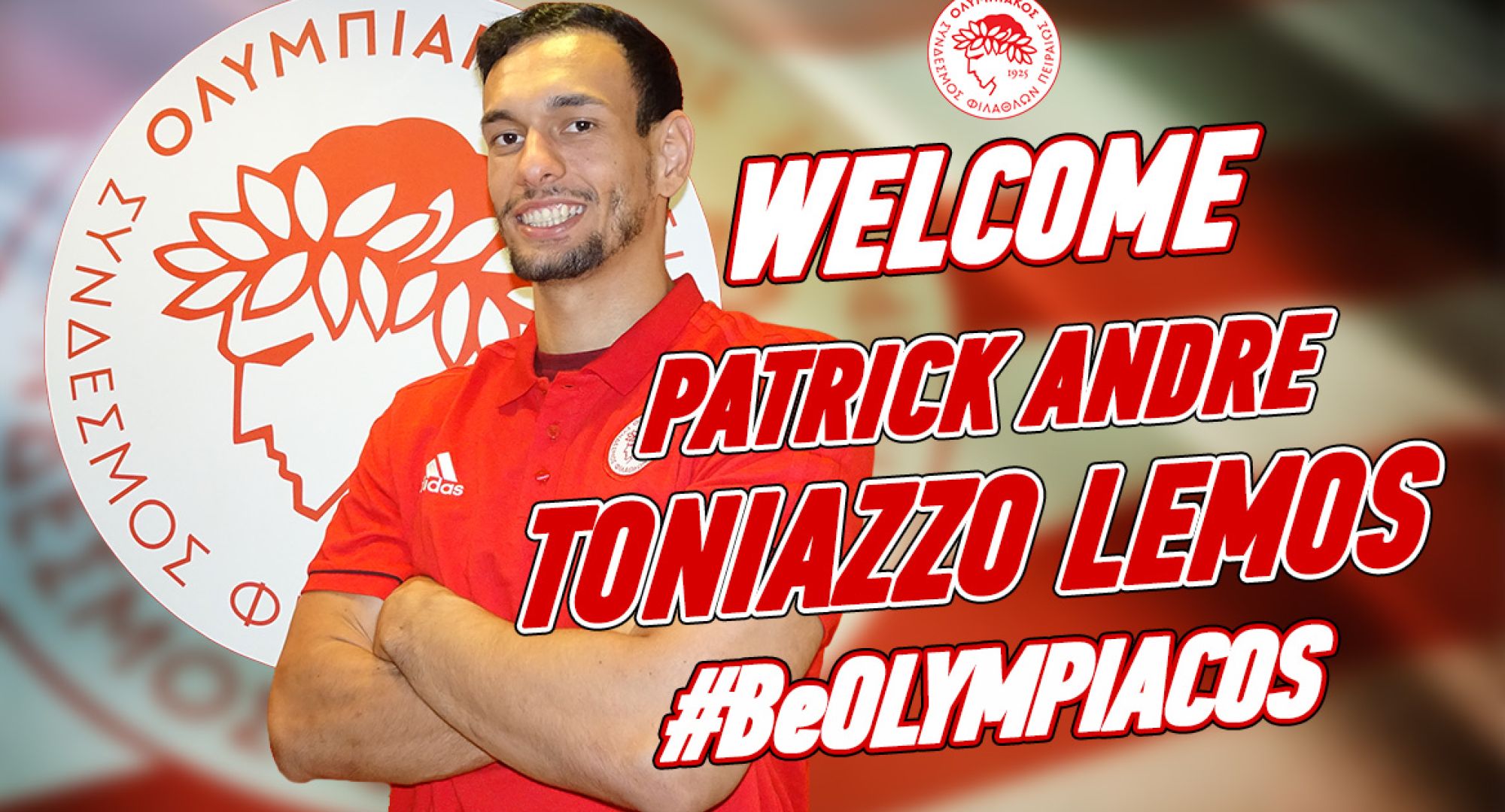 O Ολυμπιακός Σ.Φ.Π./Όμιλος Ξυνή, ανακοινώνει την έναρξη της συνεργασίας του με τον Βραζιλιάνο αθλητή, Πάτρικ Αντρέ Τονιάζο Λέμος. Ο διεθνής με την Εθνική Βραζιλίας, είναι γεννημένος στις 23 Μαΐου 1996, έχει ύψος 1.90μ., αγωνίζεται ως πλέι-μέικερ και αριστερό ίντερ και υπέγραψε συμβόλαιο μονοετούς διάρκειας.