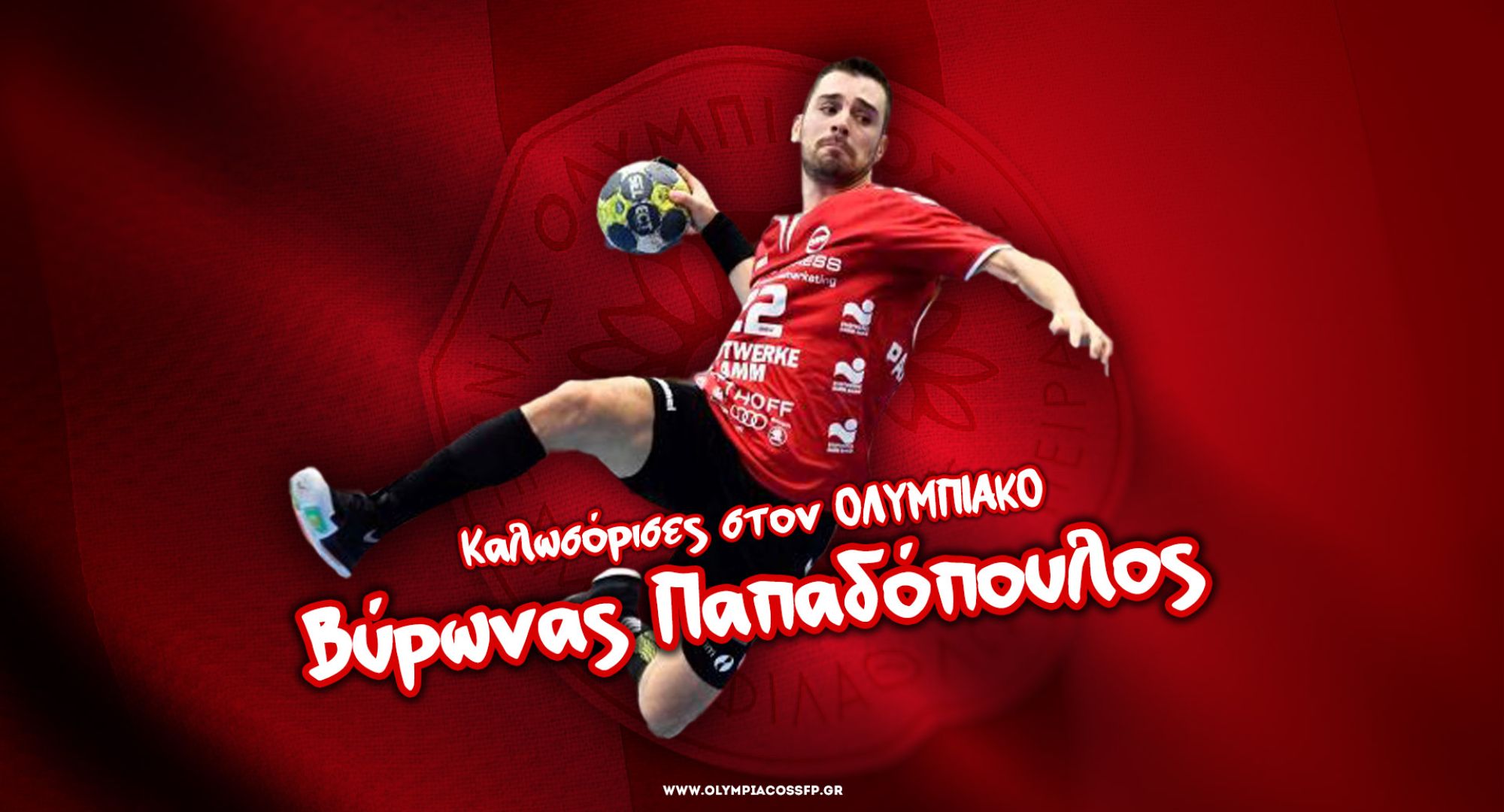 Ο ΟΛΥΜΠΙΑΚΟΣ Σ.Φ.Π., ανακοινώνει την έναρξη της συνεργασίας του με τον Βύρωνα Παπαδόπουλο. Ο διεθνής αθλητής, αγωνίζεται στη θέση του αριστερού εξτρέμ και εντάσσεται στο ρόστερ της ομάδας Χάντμπολ Ανδρών.
