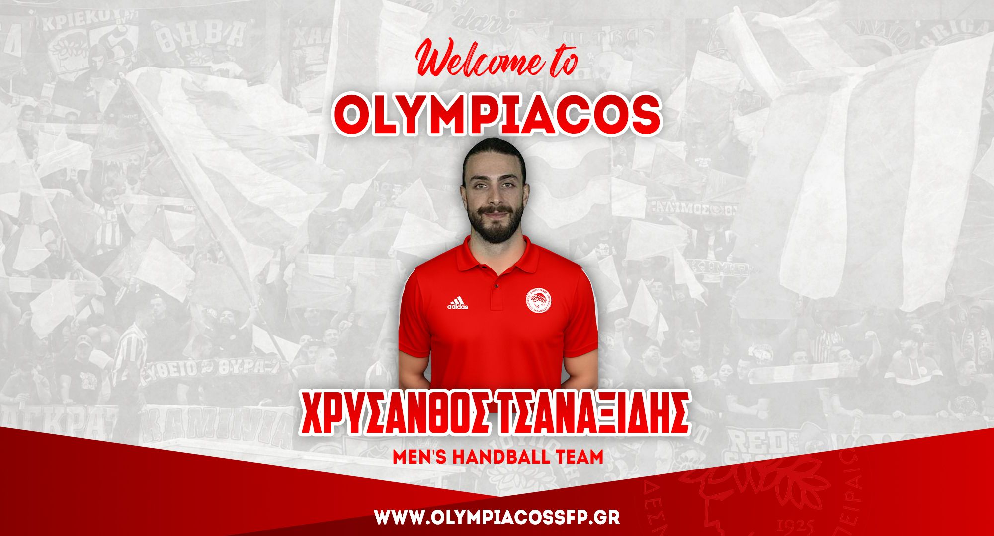 Ο ΟΛΥΜΠΙΑΚΟΣ Σ.Φ.Π. ανακοινώνει την έναρξη της συνεργασίας του με τον Χρύσανθο Τσαναξίδη. Ο διεθνής πίβοτ (ημ. γέννησης 6/11/1996, 2,00μ.) υπέγραψε το νέο του συμβόλαιο και εντάσσεται στο ρόστερ της ομάδας χάντμπολ του συλλόγου.
