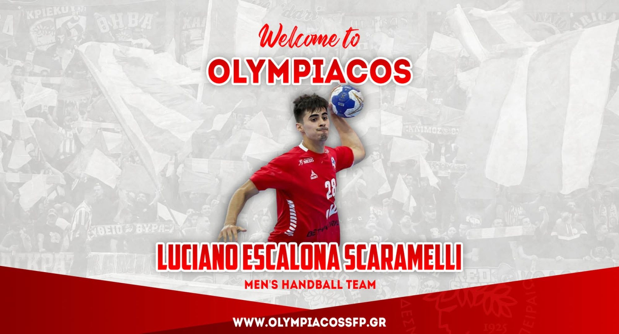 Ο ΟΛΥΜΠΙΑΚΟΣ Σ.Φ.Π. ανακοινώνει την έναρξη της συνεργασίας του με τον Λουτσιάνο Ούγκο Σκαραμέλι Εσκαλόνα (Λουτσιάνο Εσκαλόνα). Ο διεθνής Χιλιανός, με ιταλική καταγωγή, δεξιός εξτρέμ (ημ. γέννησης 23/4/2002, 1,82μ.) υπέγραψε το νέο του συμβόλαιο και εντάσσεται στο ρόστερ της ομάδας χάντμπολ του συλλόγου.