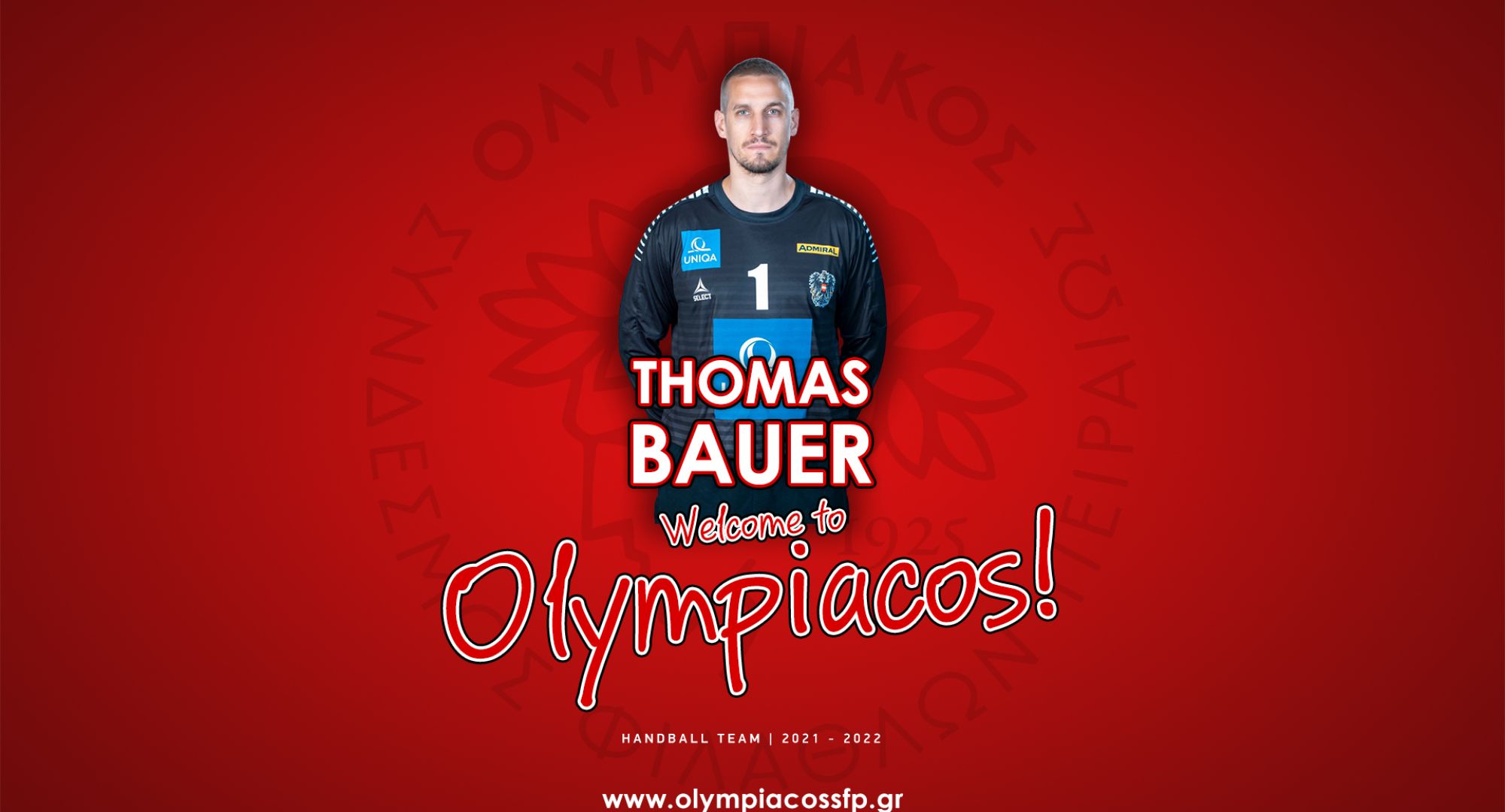Ο ΟΛΥΜΠΙΑΚΟΣ Σ.Φ.Π. ανακοινώνει την έναρξη της συνεργασίας του με τον Τόμας Μπάουερ. Ο διεθνής Αυστριακός τερματοφύλακας (ημ.γέννησης, 24/01/1986), ύψους 1,90μ. υπέγραψε το νέο του συμβόλαιο και εντάσσεται στο δυναμικό της ομάδας χάντμπολ.