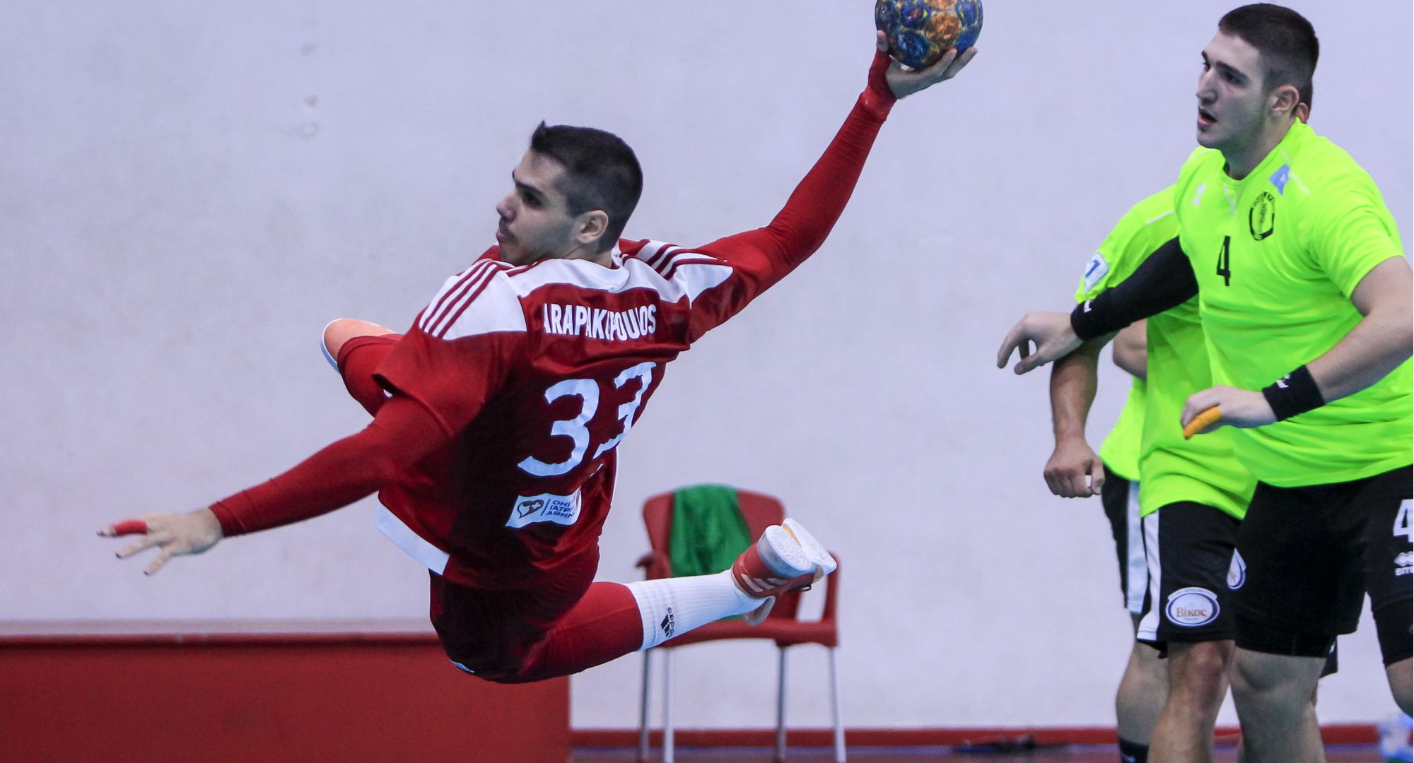 Στα πρώτα λεπτά της αναμέτρησης οι δυο ομάδες συμβάδιζαν στο σκορ με τους φιλοξενούμενους να προηγούνται για τελευταία φορά στο 6:40 με 4-5. Από εκείνο το σημείο ο Θρύλος με ένα 7-0 σερί έφτασε στο 11-5 στο 16’. Δέκα λεπτά αργότερα οι φιλοξενούμενοι σκόραραν εκ νέου σταματώντας το σερί του Ολυμπιακού και μείωσαν σε 11-6 με τον Μέτση στο 16:20. Η ομάδα του Γιώργου Ζαραβίνα «απάντησε» άμεσα και μετά από εξαιρετική αντεπίθεση ο Τζηράς διαμόρφωσε το 12-6. Η συνέχεια ήταν ανάλογη με τον Ολυμπιακό να ελέγχει απόλυτα το ρυθμό, να πηγαίνει με +5 μπροστά στο ημίχρονο και σκορ 17-12.