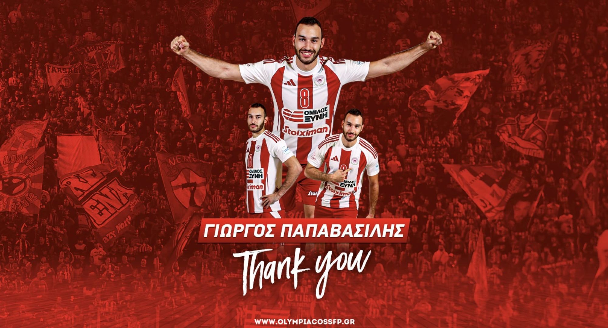 Ο ΟΛΥΜΠΙΑΚΟΣ Σ.Φ.Π. ανακοινώνει την ολοκλήρωση της συνεργασίας του με τον Γιώργο Παπαβασίλη. Σε ευχαριστούμε για τις στιγμές που ζήσαμε μαζί. Τέσσερα «ερυθρόλευκα» χρόνια γεμάτα επιτυχίες! Κατακτήσαμε επτά τίτλους, τρία πρωταθλήματα, ένα Κύπελλο και τρία SuperCup.