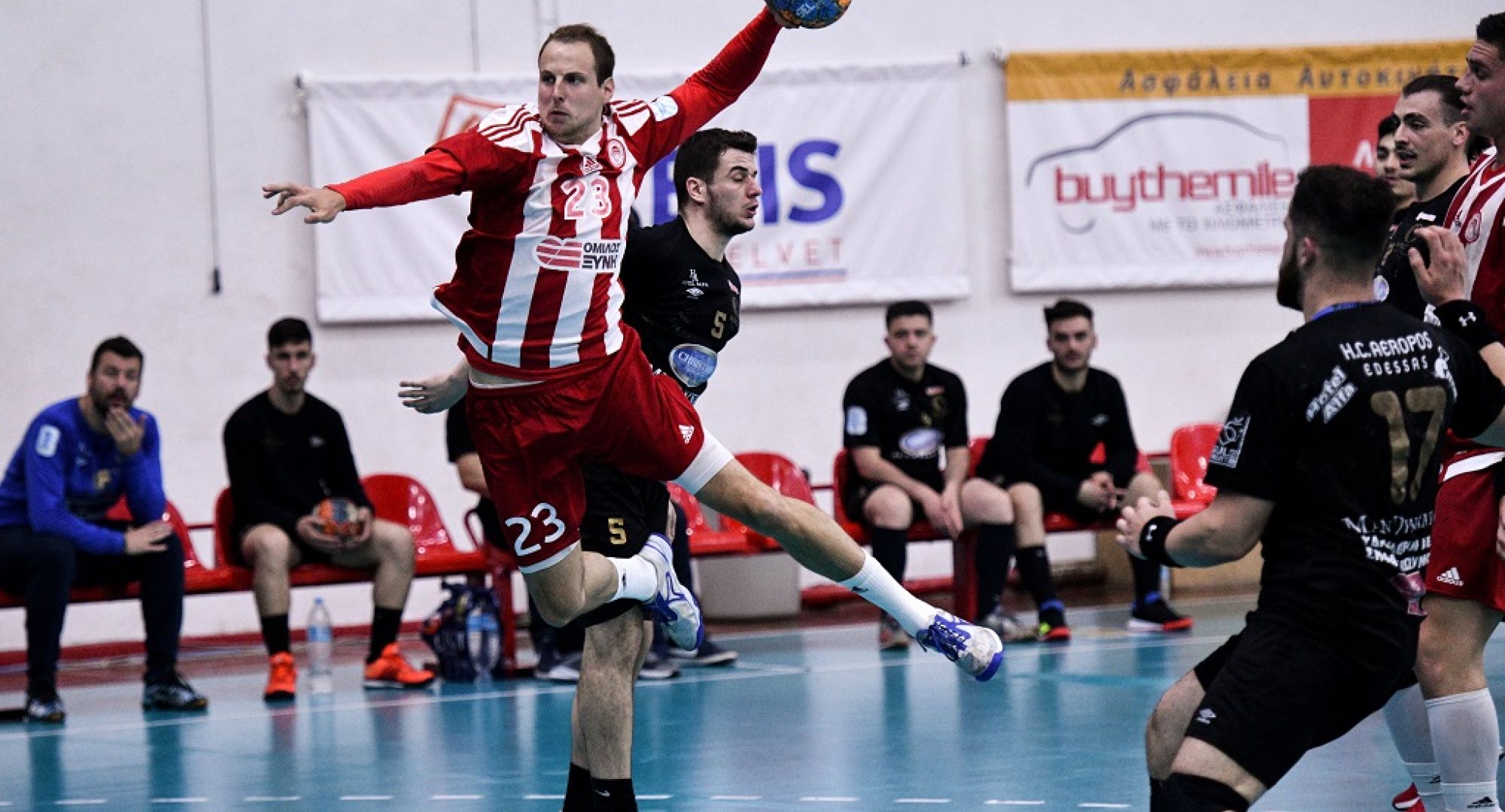 Η ομάδα Χάντμπολ Ανδρών του «Ολυμπιακού Σ.Φ.Π.»-Ομίλου Ξυνή επικράτησε με 28-18 του Αερωπού, στην Έδεσσα, διπλασίασε τις νίκες της στην ημιτελική σειρά και προκρίθηκε στους τελικούς της Handball Premier, όπου θα διεκδικήσει το δεύτερο πρωτάθλημα της ιστορίας της. Οι «ερυθρόλευκοι» επιβεβαίωσαν και στην δεύτερη αναμέτρηση των δυο ομάδων, ότι είναι το φαβορί, φτάνοντας με άνεση στην τελική επικράτηση. Η σειρά των τελικών, που κρίνεται στις τρεις νίκες, αναμένεται να αρχίσει την Παρασκευή 17 Μαϊου, εκεί όπου ο Ολυμπιακός, έχοντας το πλεονέκτημα έδρας, θα αντιμετωπίσει το νικητή του ζευγαριού ΠΑΟΚ - AEK.