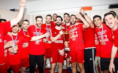Για την κατάκτηση του ιστορικού πρώτου νταμπλ, βραβεύτηκε η ομάδα Χάντμπολ του Ολυμπιακού Σ...