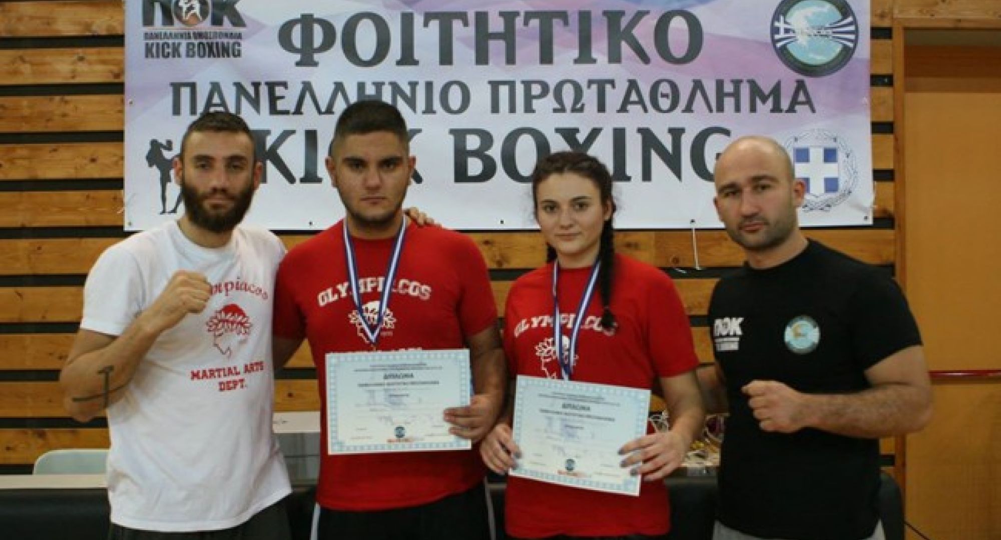 Με δυο ασημένια μετάλλια συνοδεύτηκε το ντεμπούτο του τμήματος Κick boxing σε επίσημες αγωνιστικές υποχρεώσεις. Στο πρώτο Πανελλήνιο Φοιτητικό Πρωτάθλημα Κick boxing που έλαβε μέρος το τμήμα του Ολυμπιακού έφερε και δυο ασημένια μετάλλια. Το νεοσύστατο τμήμα του Θρύλου πανηγύρισε την διάκριση αυτή, έξι μήνες μόλις μετά την ίδρυσή του γεγονός που πιστοποιεί την πολύ καλή δουλειά που γίνεται μέσα σε περιβάλλον που διευκολύνει προπονητές και αθλητές να εργαστούν στοχεύοντας σε επιτυχίες. Ουσιαστικά είναι η πρώτη επίσημη διοργάνωση που έλαβε μέρος το τμήμα που προπονεί το τεχνικό επιτελείο των Βλαδίμηρου Ναζαρένκο και Ισίδωρου Μπινίκου και ο απολογισμός των δυο ασημένιων μεταλλίων σε δυο συμμετοχές είναι ελπιδοφόρος για το μέλλον του τμήματος. Οι 20χρονοι αθλητές του Ολυμπιακού Τζανέτης Ραφαήλ (στην κατηγορία +91) και Xαρά Γρηγοριάδου (στην κατηγορία -70) παρά το επιβαρυμένο πρόγραμμα τους λόγω και των φοιτητικών τους υποχρεώσεων άφησαν πολύ καλές εντυπώσεις με την παρουσία τους και την κατάκτηση των δυο ασημένιων μεταλλίων γεγονός που ικανοποίησε απόλυτα τους προπονητές τους.