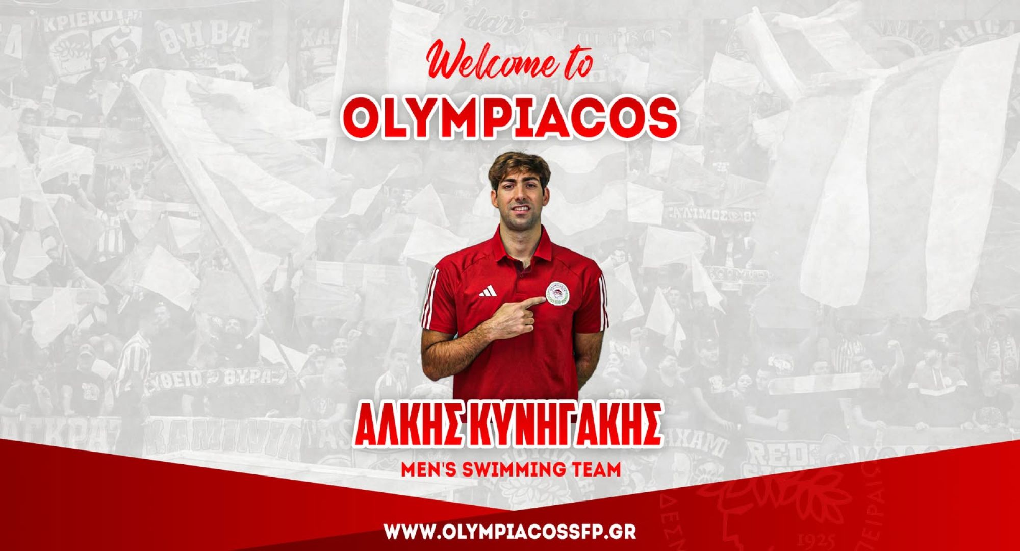 Ο ΟΛΥΜΠΙΑΚΟΣ Σ.Φ.Π. ανακοινώνει την έναρξη της συνεργασίας του με τον Άλκη Κυνηγάκη. Ο 27χρονος αθλητής (ημ. γέννησης 21/8/1998) εντάσσεται στην ομάδα κολύμβησης του συλλόγου.