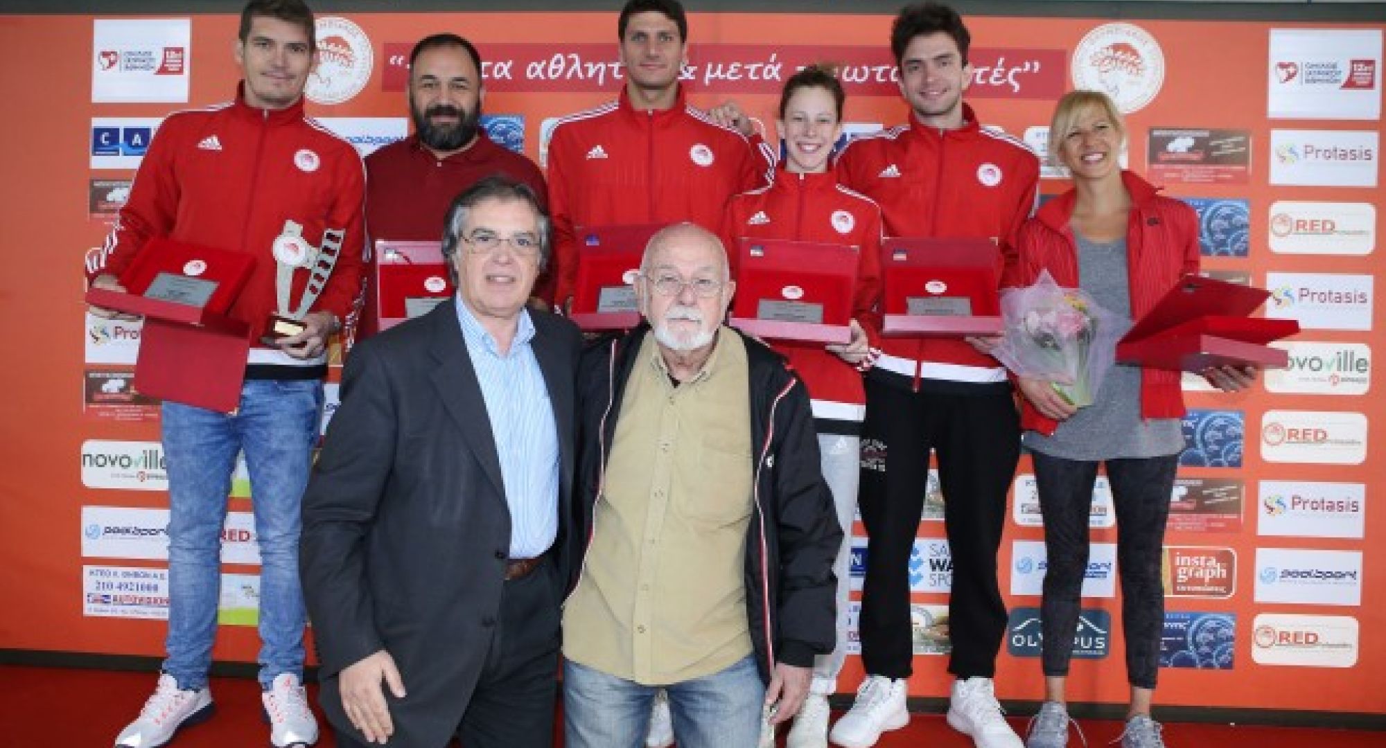 Ο Ολυμπιακός αρχικά βράβευσε τον Σπύρο Γιαννίωτη για τη διάκρισή του στους Ολυμπιακούς Αγώνες του Ρίο καθώς και για την πολυετή προσφορά του στο σύλλογο μιας και ολοκλήρωσε την περσινή σεζόν την λαμπρή καριέρα του στις πισίνες. Τον αρχιπροπονητή του Ολυμπιακού και ομοσπονδιακό τεχνικό Νίκο Γέμελος για την επιτυχία του στους Ολυμπιακούς Αγώνες. Την Κέλλυ Αραούζου, τον Στέφανο Δημητριάδη, τον Χρήστο Κατραντζή και τον Απόστολο Χρήστου για τη συμμετοχής στους Ολυμπιακούς Αγώνες. Καθώς επίσης και την Μαριάννα Λυμπερτά η οποία τιμήθηκε για το ήθος της και την προσφορά της στην ελληνική κολύμβηση και στο σύλλογο μας.