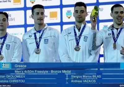 Το χάλκινο μετάλλιο στα 4Χ50μ. ελεύθερο, στο Ευρωπαϊκό πρωτάθλημα 25άρας πισίνας στο Οτοπένι, κατέκτησαν οι πρωταθλητές του τμήματος κολύμβησης του...