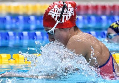 Η νεαρή αθλήτρια του Ολυμπιακού Αντωνία Ρακοπούλου, μετά το Πανελλήνιο ρεκόρ γυναικών-νεανίδων-κορασίδων στα 1500μ. Ελεύθερο (17:02.19), κατέρριψε ...