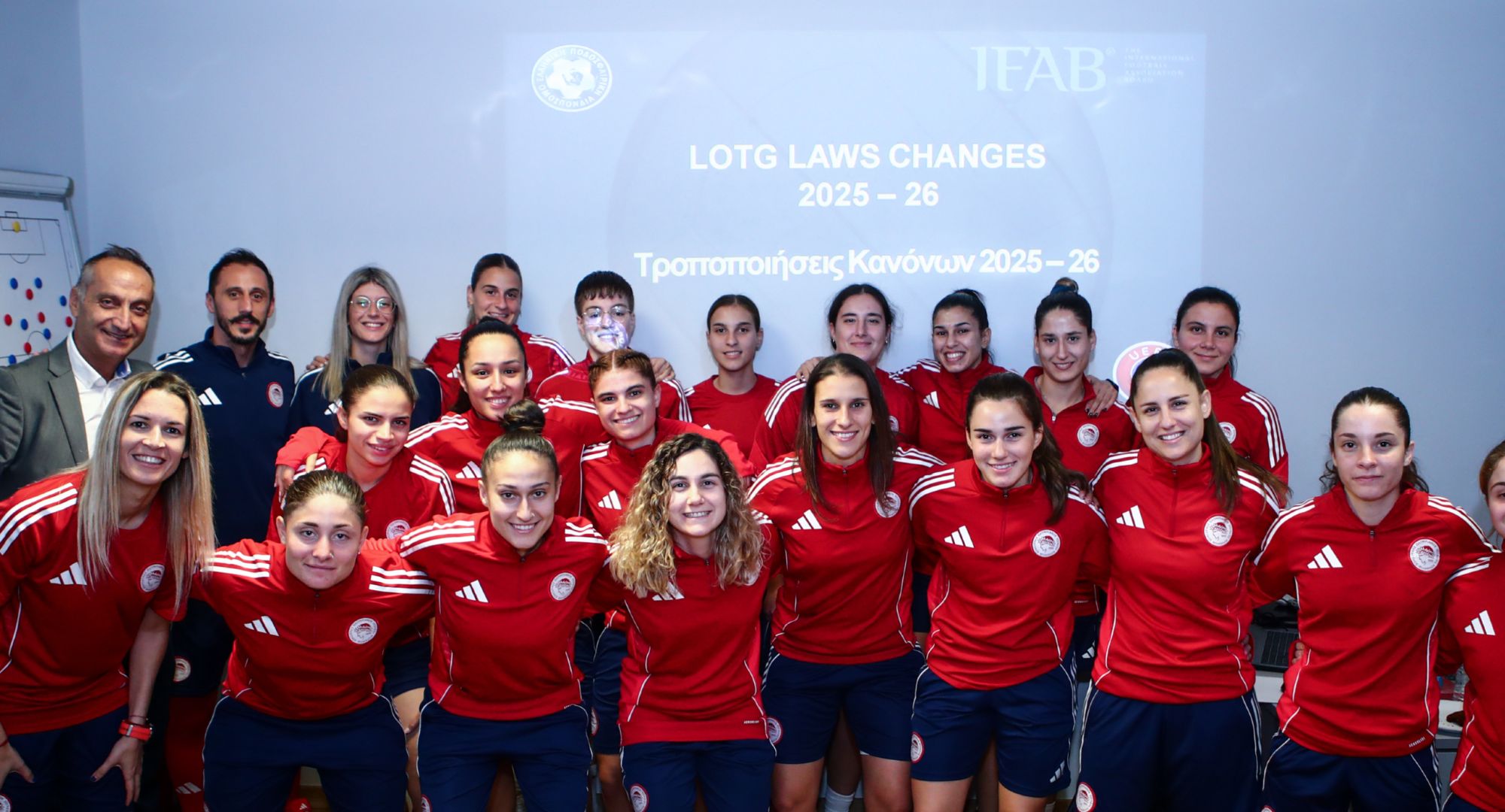 Η ομάδα ποδοσφαίρου Γυναικών του Ολυμπιακού διοργάνωσε, την Πέμπτη (30/10) το απόγευμα, στο προπονητικό κέντρο του Ρέντη, Σεμινάριο ενημέρωσης Κανόνων Παιχνιδιού, με ομιλητή τον εκπαιδευτή, κ. Μοιραδωράκη Χαράλαμπο. Το «παρών» στο Σεμινάριο στο Ρέντη έδωσαν οι ποδοσφαιρίστριες και το προπονητικό επιτελείο της ομάδας των «ερυθρόλευκων».