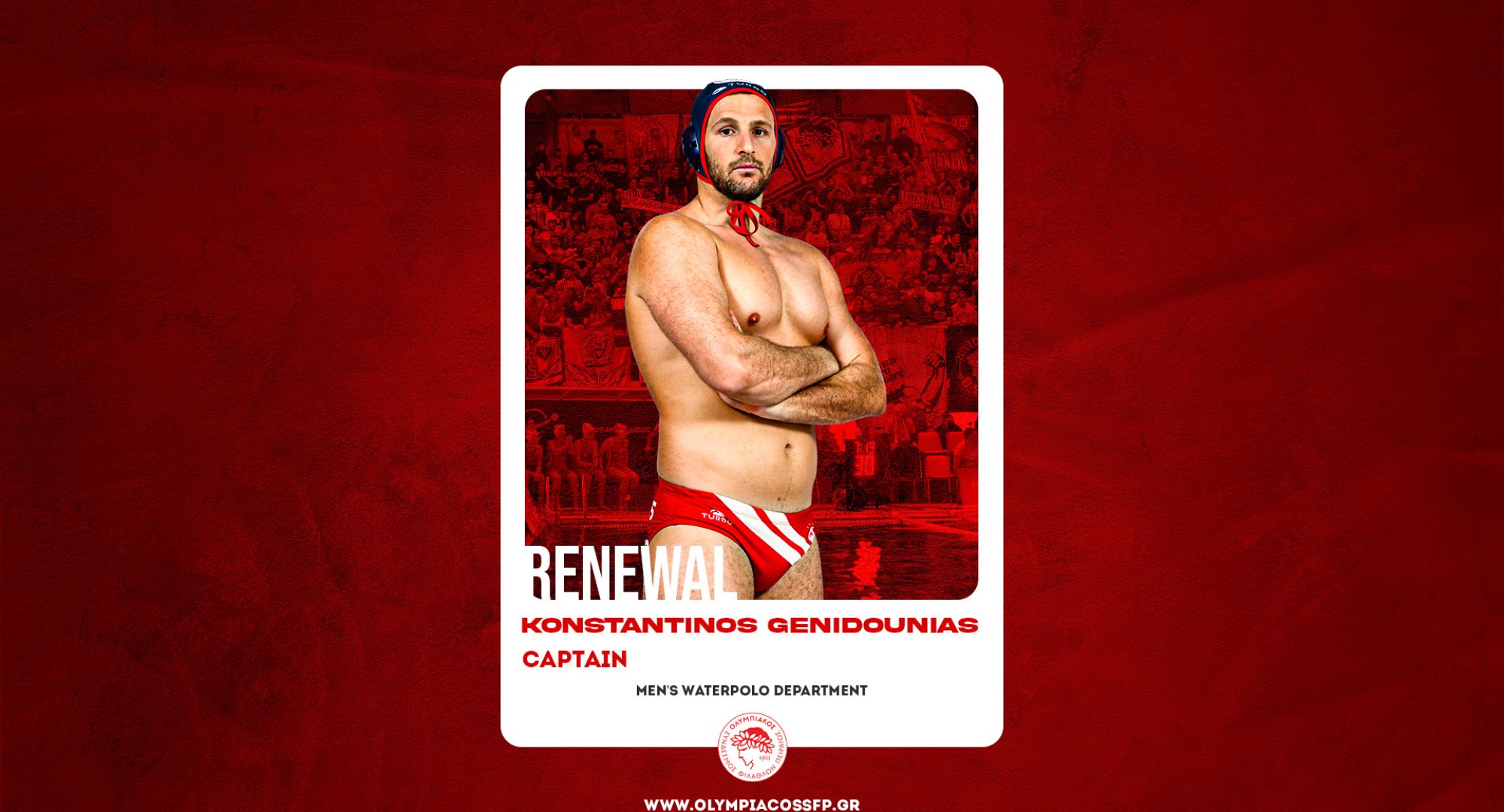 Ο ΟΛΥΜΠΙΑΚΟΣ Σ.Φ.Π. ανακοινώνει την ανανέωση της συνεργασίας του με τον Ντίνο Γενηδουνιά. Ο αρχηγός και διεθνής περιφερειακός υπέγραψε το νέο του συμβόλαιο, τριετούς διάρκειας και παραμένει για 10η διαδοχική σεζόν στο ρόστερ της ομάδας πόλο Ανδρών του συλλόγου.