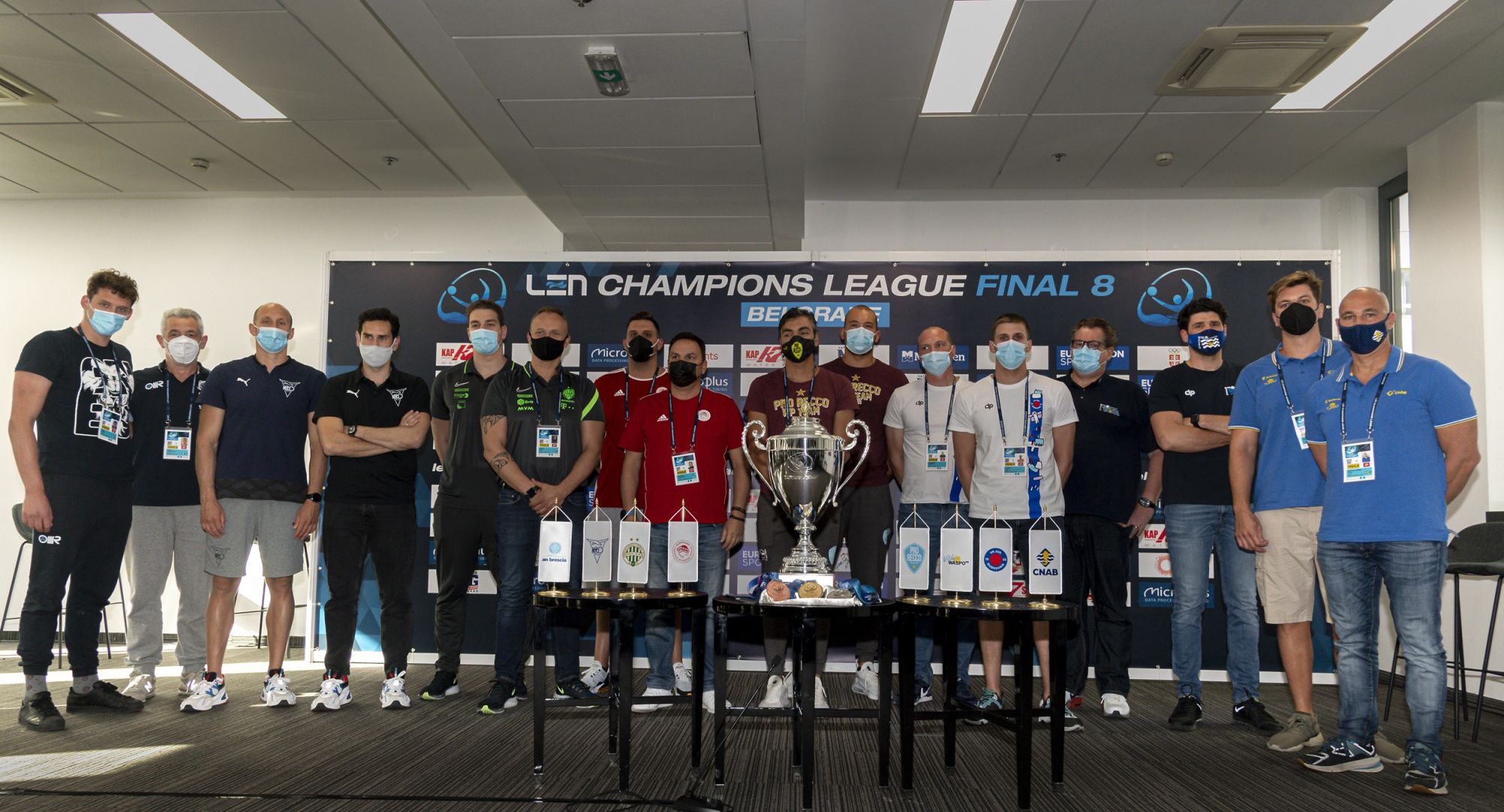 Ο προπονητής του Ολυμπιακού, Θοδωρής Βλάχος επεσήμανε ότι: «Είμαστε χαρούμενοι που μπορούμε να είμαστε εδώ γιατί η σεζόν ήταν πραγματικά δύσκολη για τους συλλόγους, αυτή είναι η τέταρτη «φούσκα», δεν είναι εύκολο για κανέναν. Φτάσαμε στον τελικό τρεις φορές τα τελευταία τέσσερα χρόνια και με βάση την εμπειρία μας πρέπει να πω ότι είναι η πρώτη μέρα είναι πραγματικά η πιο σημαντική. Εάν κερδίσουμε, μπορούμε να ονειρευόμαστε το τρόπαιο και νομίζω ότι αύριο μπορούμε να το καταφέρουμε». Με τη σειρά του ο αρχηγός των Πειραιωτών, Κώστας Μουρίκης, υπογράμμισε: «Ετοιμαζόμαστε για αυτά τα παιχνίδια όλο το χρόνο. Στον πρώτο μας αγώνα παίζουμε με μία από τις καλύτερες ομάδες φέτος, την Barceloneta. Ελπίζω να έχουμε την καλύτερη τύχη αύριο και το εύχομαι για όλες τις άλλες ομάδες».