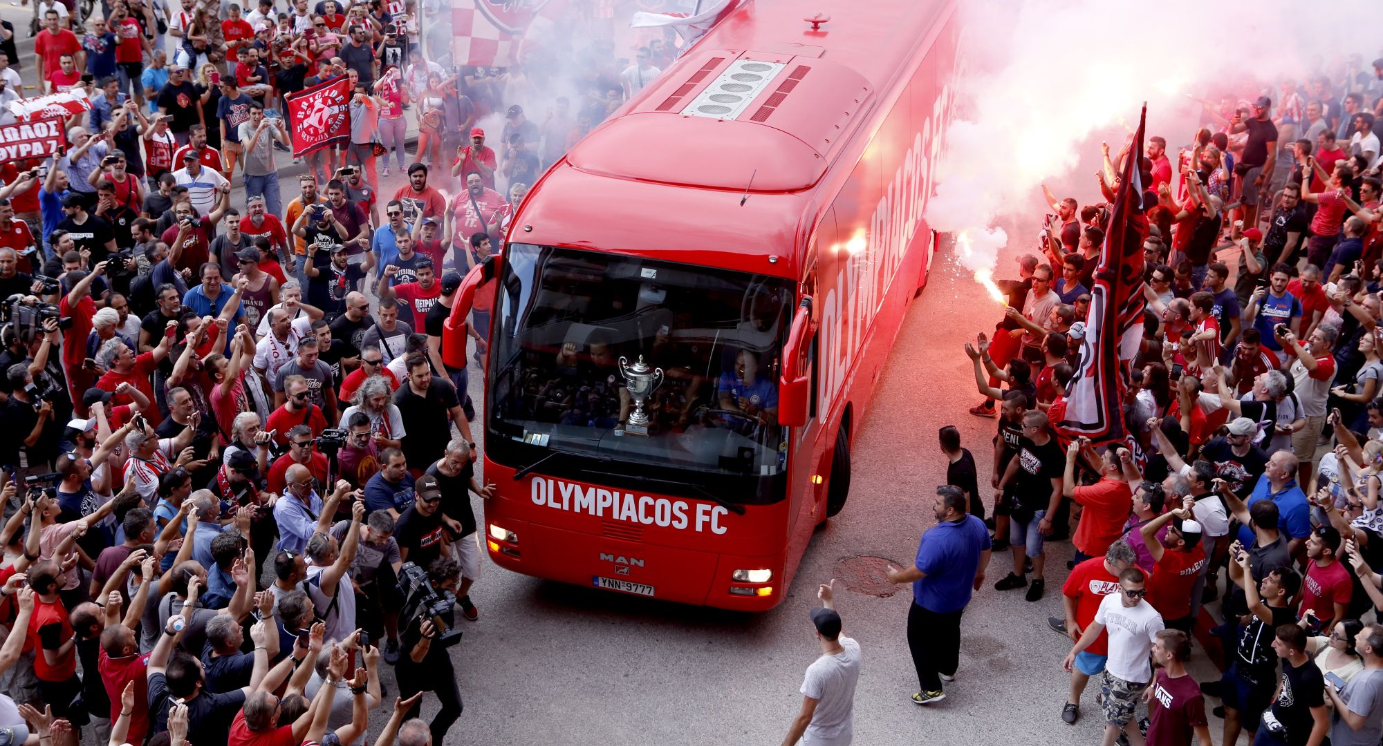 Πίσω στη βάση της επέστρεψε το μεσημέρι της Κυριακής η Πρωταθλήτρια Ευρώπης, ομάδα πόλο Ανδρών του Ολυμπιακού. Οι θριαμβευτές του LEN Champions League έφτασαν στις 14:30 στο αεροδρόμιο "Ελευθέριος Βενιζέλος" με το πολυπόθητο τρόπαιο στις αποσκευές τους. Εκεί τους περίμεναν φίλαθλοι και οι εκπρόσωποι του Τύπου για τις πρώτες δηλώσεις επί ελληνικού εδάφους. Η αποστολή του Θρύλου μετέβη αρχικά στο Ρέντη όπου την περίμενε το νέο πούλμαν της ΠΑΕ Ολυμπιακός το οποίο διέθεσε για την υποδοχή της ομάδας και στην συνέχεια η αποστολή κατευθύνθηκε στο γήπεδο "Γ. Καραϊσκάκης" όπου την περίμεναν περισσότεροι από 2000 φίλοι του Ολυμπιακού, οι οποίοι έστησαν ένα τρελό πάρτι μόλις το κατακόκκινο επιβλητικό νέο πούλμαν του Θρύλου με την απαστράπτουσα κούπα στην πρώτη θέση, έκανε την εμφάνιση του στο πάρκινγκ του γηπέδου "Γ.Καραϊσκάκης". Από μικρά παιδιά έως ανθρώπους της τρίτης ηλικίας ξέσπασαν σε ζητωκραυγές, αποθεώνοντας τους αθλητές του Θρύλου ενώ δεν σταμάτησαν να τραγουδούν τον ύμνο του Ολυμπιακού! Χαρακτηριστική στιγμή όταν όλοι μαζί αγκαλιάστηκαν και τραγούδησαν "Είσαι στο μυαλό κάτι μαγικό"! Ιδιαίτερη στιγμή ήταν όταν η κούπα πέρασε στα χέρια του προέδρου του Ολυμπιακού Σ.Φ.Π., Μιχάλη Κουντούρη ο οποίος έχει κατακτήσει 5 Ευρωπαϊκούς τίτλους στην 8ετή έως σήμερα θητεία του στον σύλλογο.