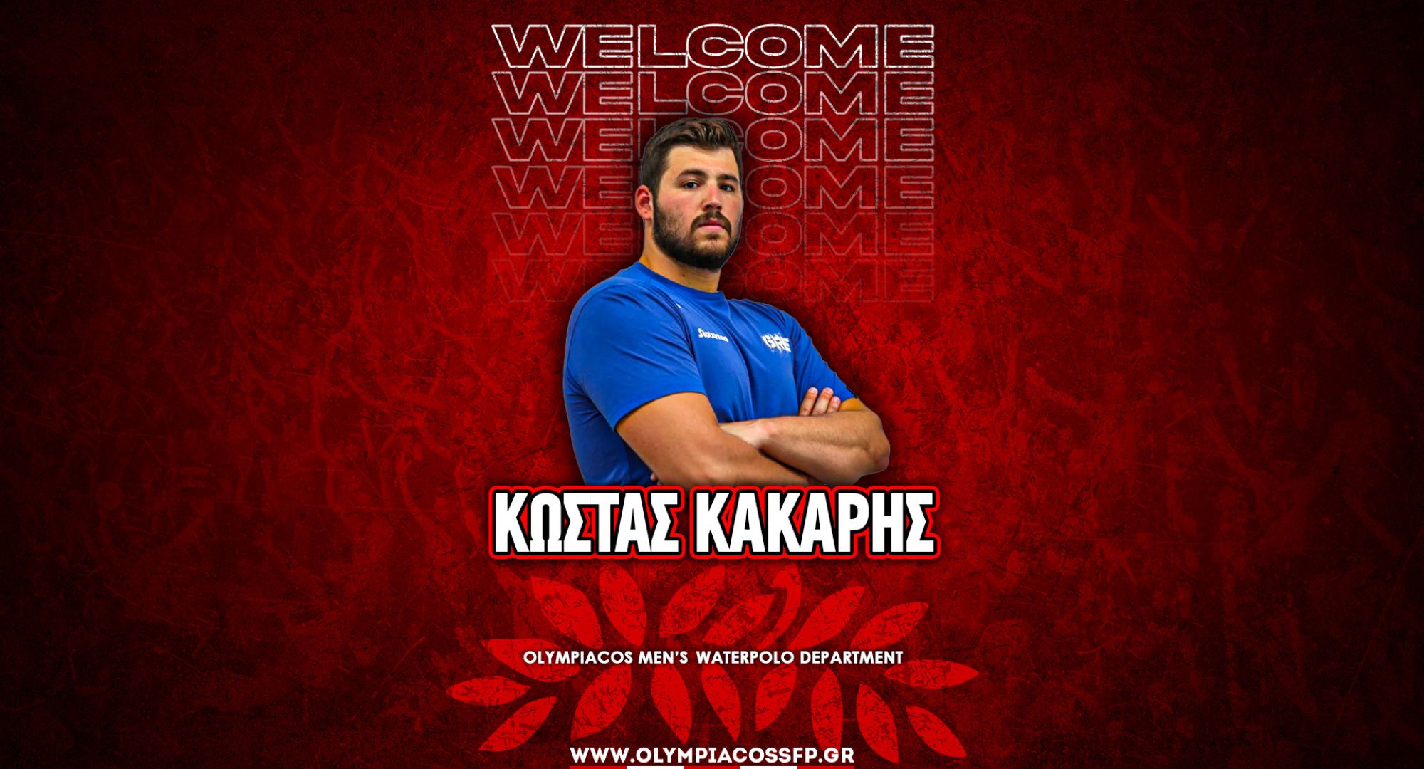 Ο ΟΛΥΜΠΙΑΚΟΣ Σ.Φ.Π. ανακοινώνει την έναρξη της συνεργασίας του με τον Κώστα Κάκαρη. Ο διεθνής φουνταριστός (ημ. γέννησης 2/7/1999, 1,98μ.) υπέγραψε το νέο του συμβόλαιο και επιστρέφει στο ρόστερ της ομάδας πόλο Ανδρών του συλλόγου.