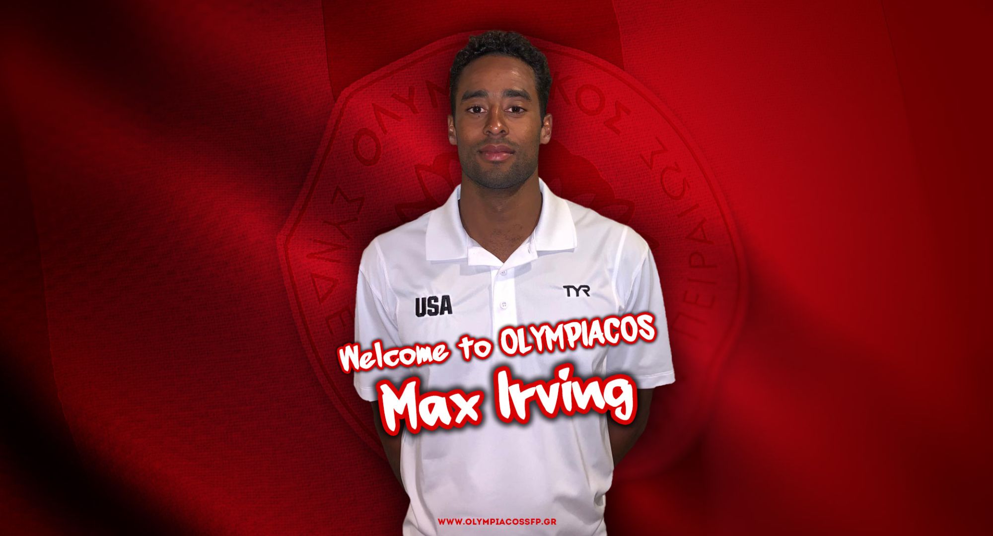 Ο ΟΛΥΜΠΙΑΚΟΣ Σ.Φ.Π., ανακοινώνει την έναρξη της συνεργασίας του με τον Μαξ Ίρβινγκ. Ο διεθνής περιφερειακός από τις ΗΠΑ (ημ. γέννησης 21/5/1995) υπέγραψε το συμβόλαιό του και εντάσσεται στο ρόστερ της ομάδας πόλο Ανδρών.