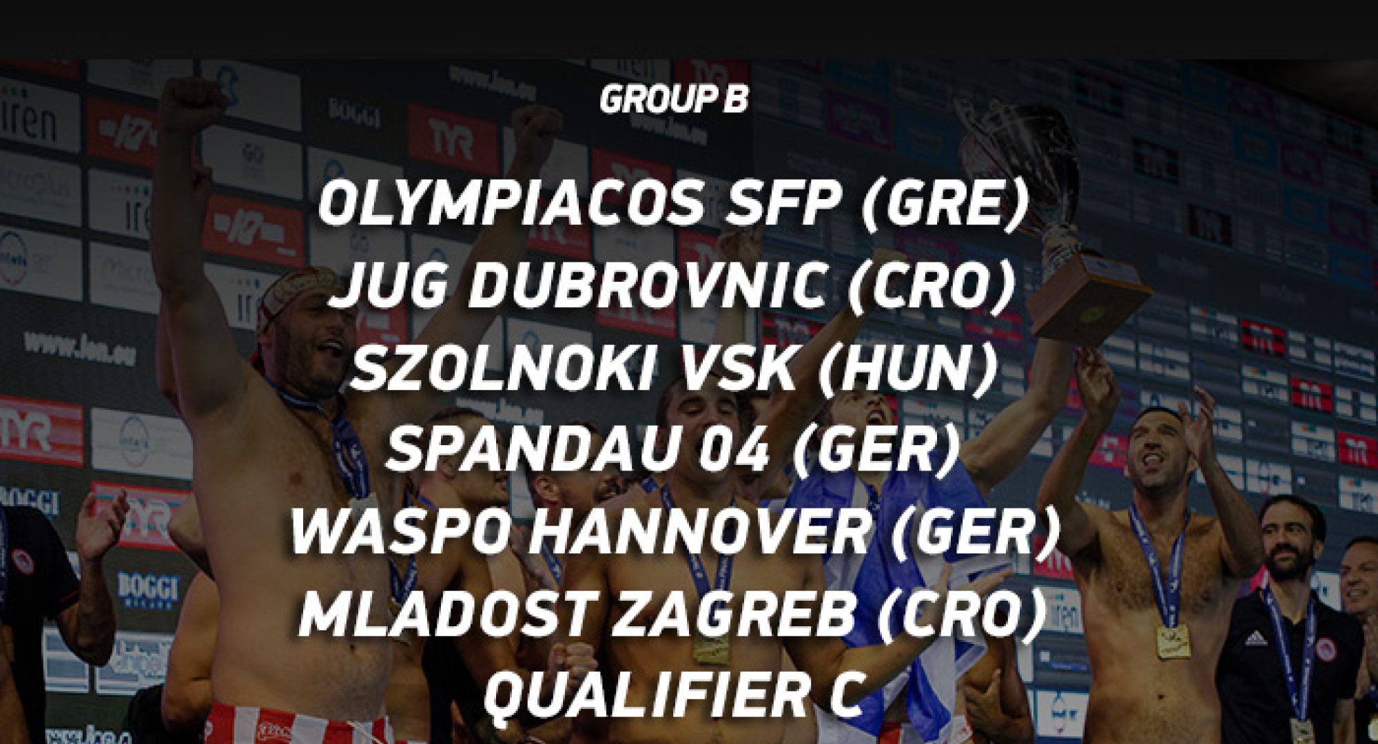 Toυς πέντε από τους επτά συνολικά αντιπάλους που θα βρει στο δρόμο του στη φάση των ομίλων του LEN Champions League 2018-2019, έμαθε σήμερα ο Ολυμπιακός μετά την κλήρωση που πραγματοποιήθηκε στη Βαρκελώνη. Οι Πρωταθλητές Ευρώπης θα μετέχουν στο Β’ Όμιλο και θα αντιμετωπίσουν την Γιουγκ (Κροατία), την Ζόλνοκ (Ουγγαρία), το Αννόβερο που θα διοργανώσει το Final 8, την Σπαντάου (Γερμανία), τη Μλάντοστ (Κροατία) και τους νικητές των προκριματικών Β και C (θα προκύψουν μόλις ολοκληρωθεί η διαδικασία της προκριματικής φάσης). Ο Θρύλος στην πρεμιέρα της διοργάνωσης θα αντιμετωπίσει εκτός έδρας τον νικητή από τον Β’ προκριματικό την Τετάρτη 17 Οκτωβρίου. Στο πλαίσιο της 2ης αγωνιστικής οι Πρωταθλητές Ευρώπης θα αντιμετωπίσουν στη Γερμανία το Αννόβερο και την 3η αγωνιστική την Σπαντάου στο πρώτο εντός έδρας παιχνίδι της για την φάση των ομίλων.