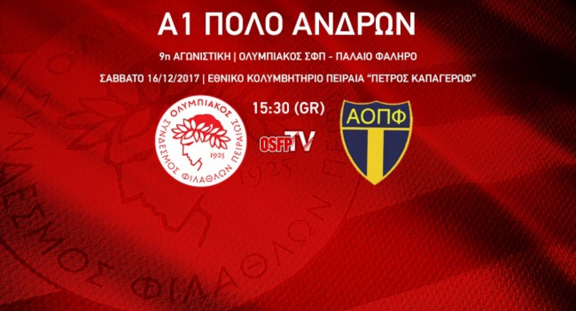 Παρακολουθήστε ζωντανά απο το OSFP TV την αναμέτρηση Ολυμπιακός ΣΦΠ - Παλαιό Φάληρο για την 9η Αγωνιστική της Α1 Πόλο Ανδρών