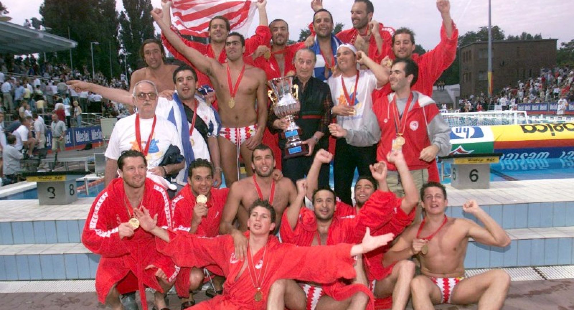 Olympiacos completed the triumph in the final wining the host Honved 9-7. Michalis Kountouris was present as a club supporter in the final celebrating the conquest of the trophy. This was the first European trophy of the men’s water polo team.