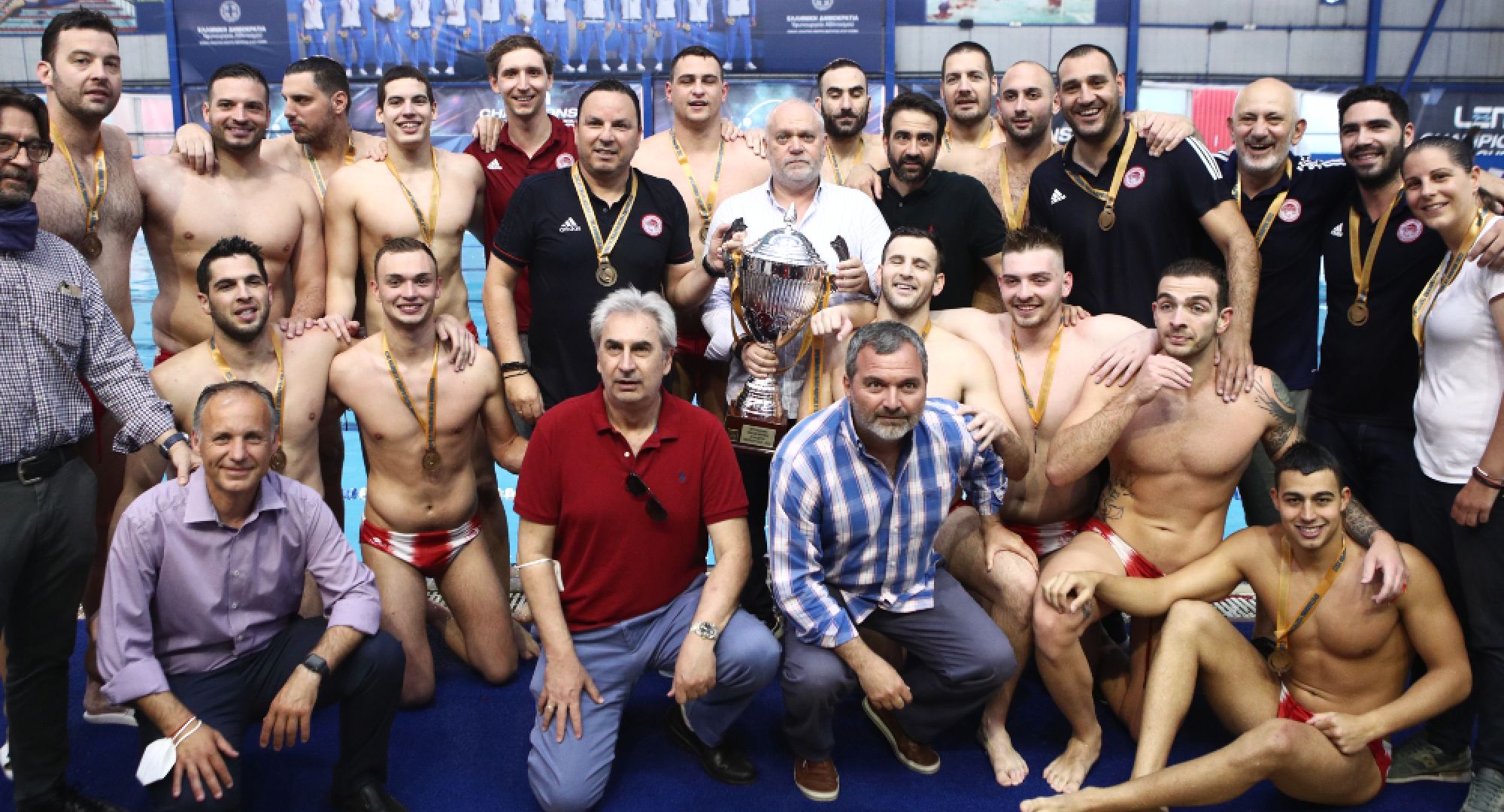 Την κατάκτηση του 10ου διαδοχικού πρωταθλήματος πανηγύρισε η ομάδα πόλο Ανδρών του Ολυμπιακού! Ο «Βασιλιάς» της ελληνικής υδατοσφαίρισης πανηγύρισε την κατάκτηση του 36ου πρωταθλήματος της ιστορίας του, το οποίο είναι το 22ο τα τελευταία 24 χρόνια! Σε έναν συγκλονιστικό σε εξέλιξη τελικό της Α1, ο οποίος κρίθηκε στη διαδικασία των πέναλτι, ο Θρύλος επικράτησε με 14-12 του ΝΟ Βουλιαγμένης στο Παπαστράτειο, έκανε το 3-0 στη σειρά και κατέκτησε το 20ο νταμπλ της ιστορίας του! Οι «ερυθρόλευκοι» ολοκλήρωσαν τη σεζόν 2021-22 με την κατάκτηση δύο ακόμα τίτλων, διευρύνοντας την κυριαρχία τους στην Ελλάδα.