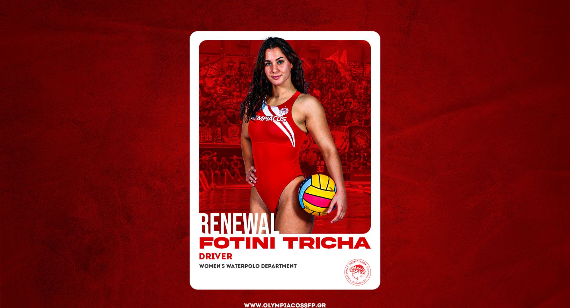 Ο ΟΛΥΜΠΙΑΚΟΣ Σ.Φ.Π. ανακοινώνει την ανανέωση της συνεργασίας του με την Φωτεινή Τριχά. Η διεθνής περιφερειακή υπέγραψε το νέο της συμβόλαιο, τετραετούς διάρκειας και παραμένει στο ρόστερ της ομάδας πόλο Γυναικών του συλλόγου.