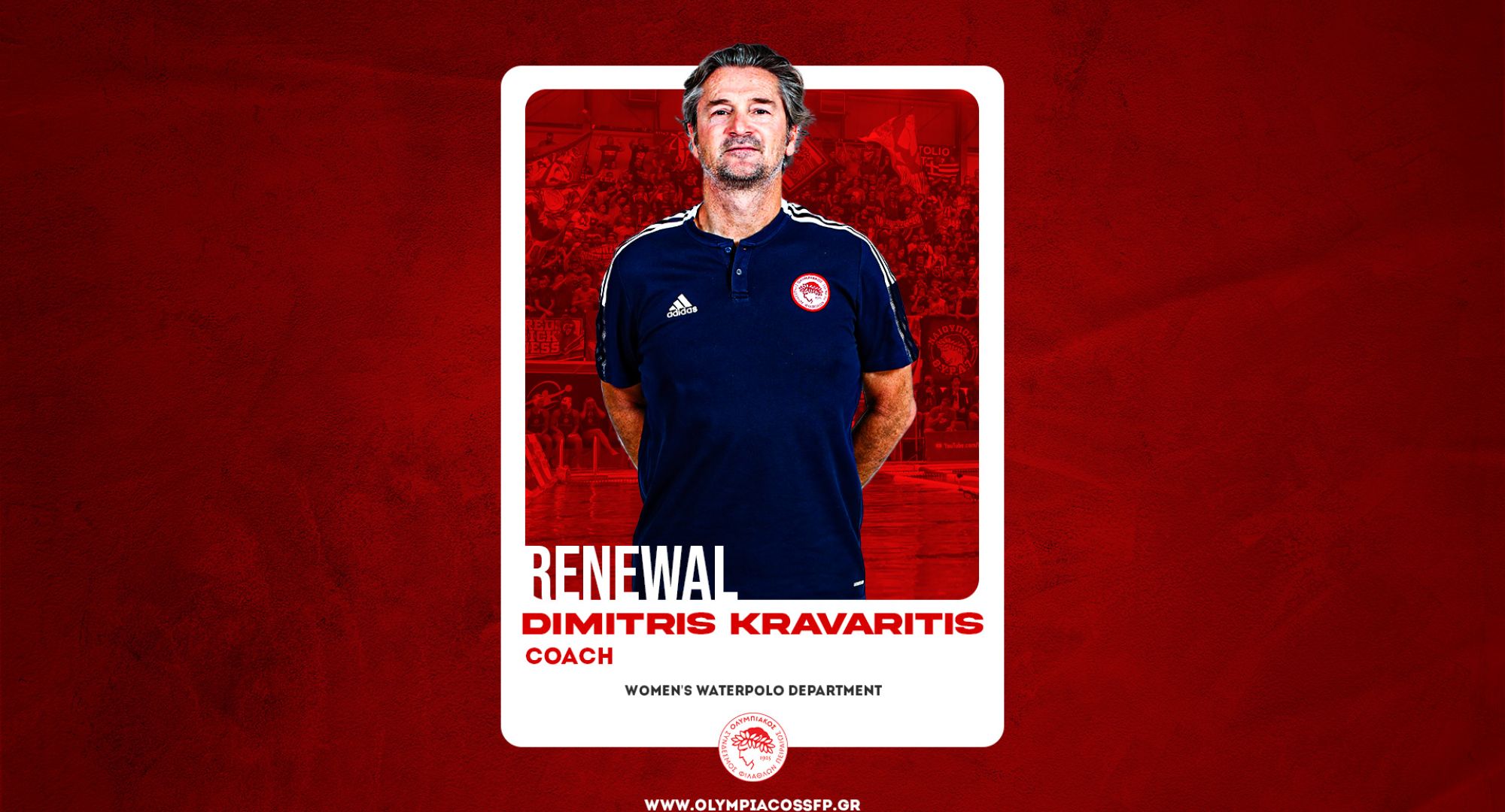 Ο ΟΛΥΜΠΙΑΚΟΣ Σ.Φ.Π. ανακοινώνει την ανανέωση της συνεργασίας του με τον Δημήτρη Κραβαρίτη. Ο Έλληνας προπονητής υπέγραψε το νέο του συμβόλαιο και παραμένει στην τεχνική ηγεσία της ομάδας πόλο Γυναικών του συλλόγου.