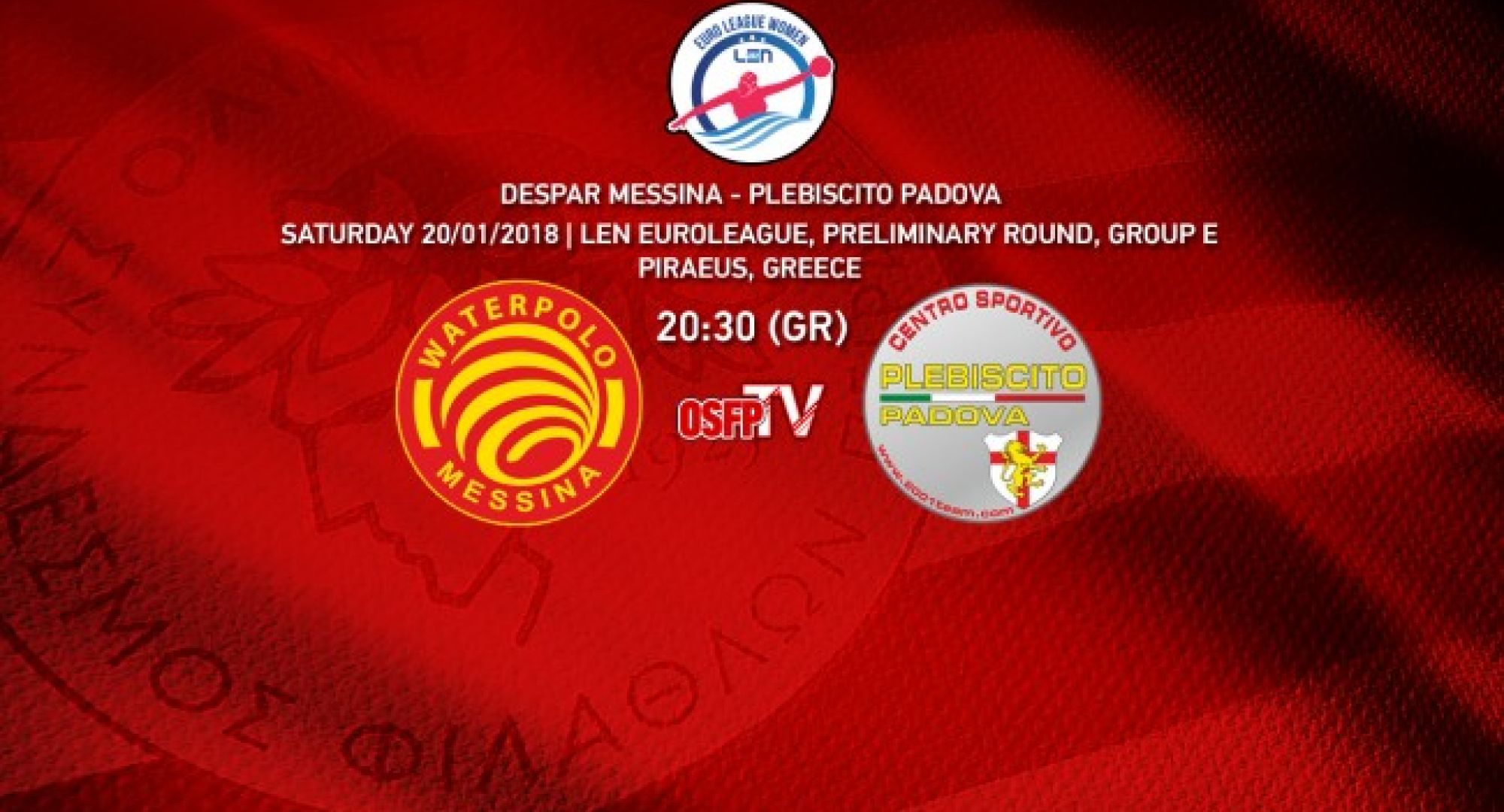 Παρακολουθήστε ζωντανά τον τέταρτο αγώνα του 5ου ομίλου της LEN Euroleague ανάμεσα στις ομάδες απο την Ιταλία, που έχασαν στην πρεμιέρα και θέλουν να κερδίσουν τους πρώτους τους βαθμούς, Πάντοβα και Μεσίνα.