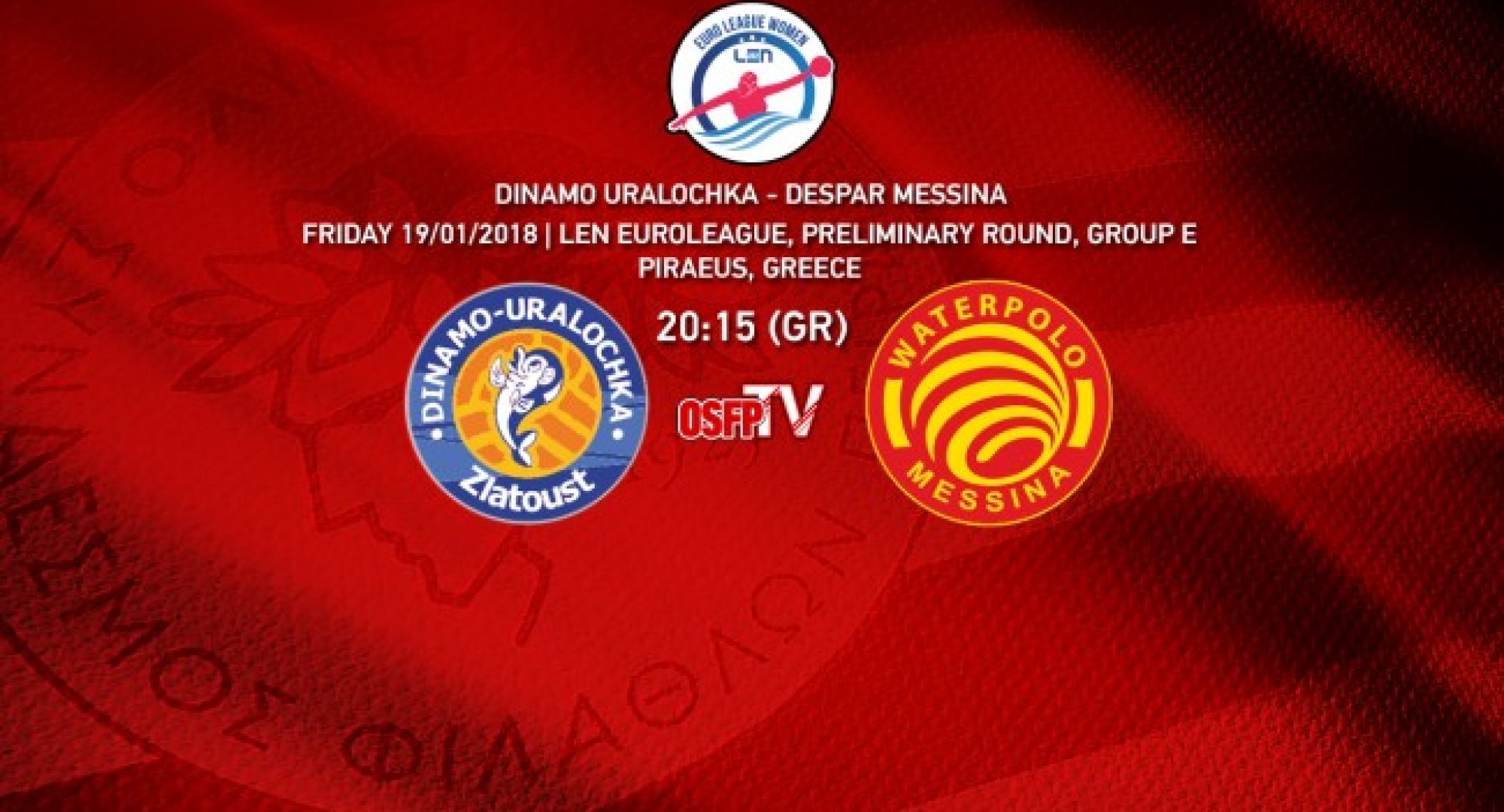 Παρακολουθήστε ζωντανά τον δεύτερο αγώνα της πρώτης ημέρας του 5ου ομίλου της LEN Euroleague ανάμεσα στις ομάδες Dinamo Uralochka (Ρωσία) και Despar Messina (Ιταλία).