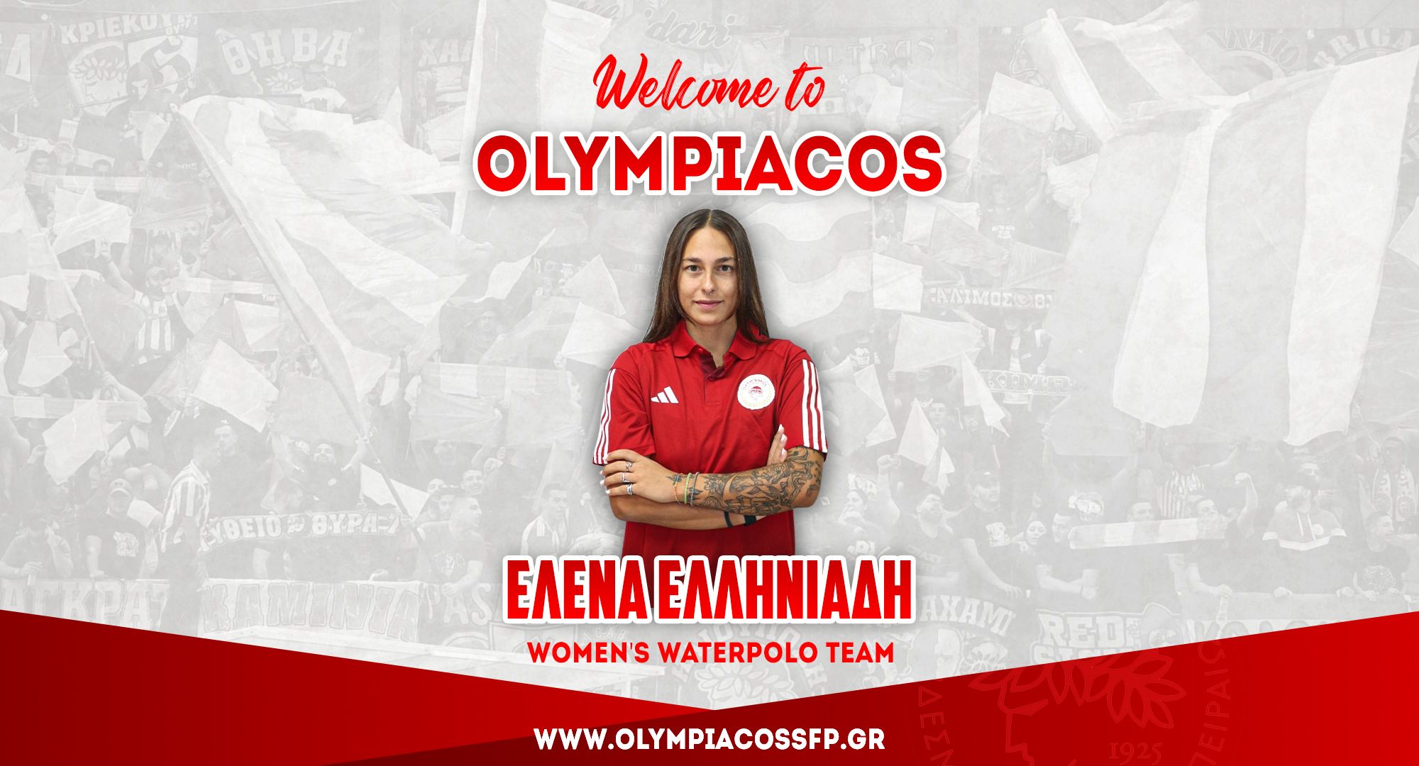 Ο ΟΛΥΜΠΙΑΚΟΣ Σ.Φ.Π. ανακοινώνει την έναρξη της συνεργασίας του με την Έλενα Ελληνιάδη. Η διεθνής περιφερειακή (ημ. γέννησης 2/4/1999) υπέγραψε το νέο της συμβόλαιο και εντάσσεται στο ρόστερ της ομάδας πόλο Γυναικών του συλλόγου.