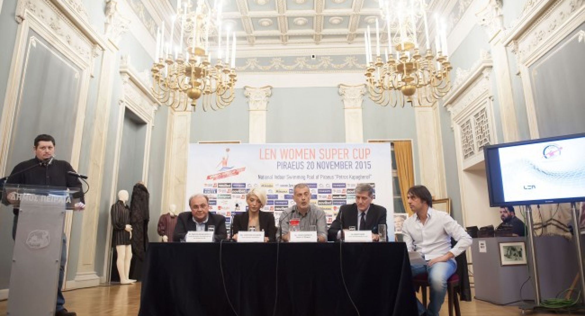 Στο εμβληματικό φουαγίε του Δημοτικού Θεάτρου Πειραιά, πραγματοποίηθηκε την Πέμπτη (19/11) η συνέντευξη Τύπου για τον τελικό του Super Cup μεταξύ του Ολυμπιακού και της Πάντοβα που θα διεξαχθεί την Παρασκευή και ώρα 19:30 στο «Π. Καπαγέρωφ». Στο πρώτο σκέλος της συνέντευξης απεύθυναν χαιρετισμούς ο Δήμαρχος Πειραιά, κ. Γιάννης Μώραλης, η Γενική Διευθύντρια και Ειδική Γραμματέας του Ολυμπιακού κ. Χριστίνα Τσιλιγκίρη, ο εκπρόσωπος της LEN κ. Μάρκο Μπίρι και ο αντιπρόεδρος της LEN και πρόεδρος της Κ.Ο.Ε. κ. Δημήτρης Διαθεσόπουλος. Στο δεύτερο σκέλος ακολούθησαν οι τοποθετήσεις των προπονητών του Ολυμπιακού Χάρη Παυλίδη, της Πάντοβα Στέφανο Ποστερίβο και των δυο αρχηγών Φιλιώς Μανωλιουδάκη και Φεντερίκα Ρόκο.